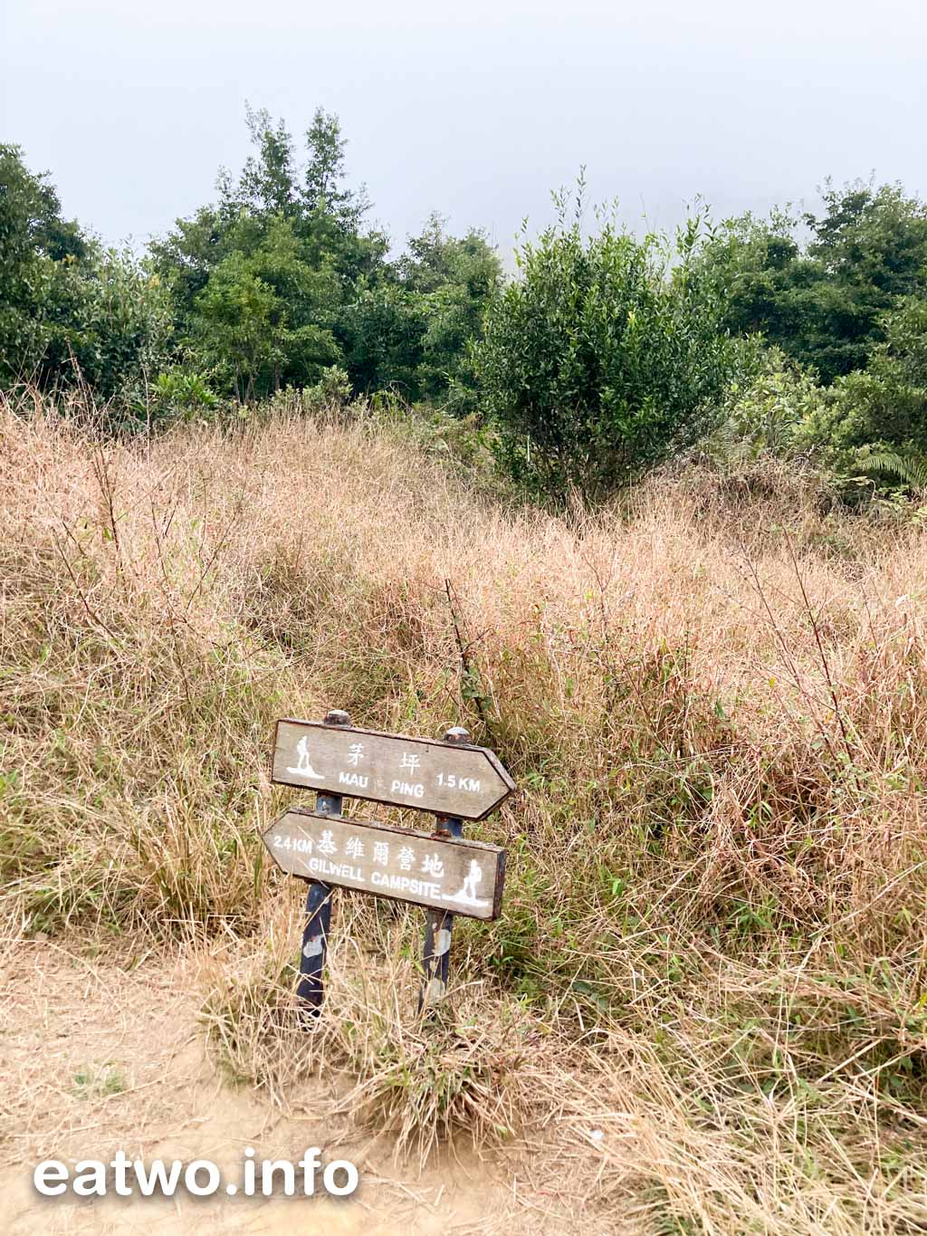 30分鐘後於分岔路段繼續上行,會發現雲層有時候就於自己身邊,回望可下瞰西貢白沙灣風景。步行20至30分鐘後,會到達一處芒草地。平地上滿滿芒草景,山坳芒草處處,人流稀少時更狀觀。芒草地位置有十字路口,退出點眾多,右邊可通往西貢茅坪方向,前行可到達水牛山、黃牛山、石芽山,有興趣可攀登黃牛石城,轉左則可到達基維爾營地。