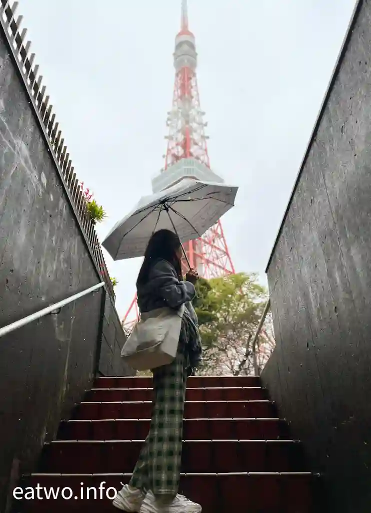 拍攝東京鐵塔嘅地方有好多,比如係甫踏出「赤羽橋駅」,已經可以直視整座鐵塔。而東京鐵塔下嘅「東京芝豆腐屋UKAI(東京芝とうふ屋うかい)」,亦可以觀看整座東京鐵塔。不過,要數編輯私心推介嘅最佳東京鐵塔視角,應該係通往東京鐵塔停車場嘅小階梯!