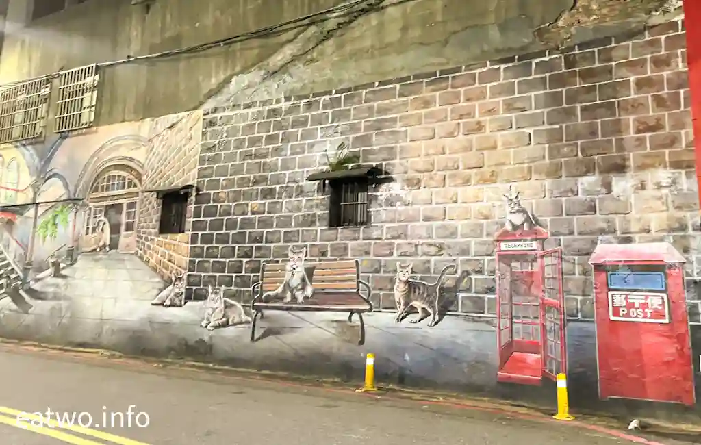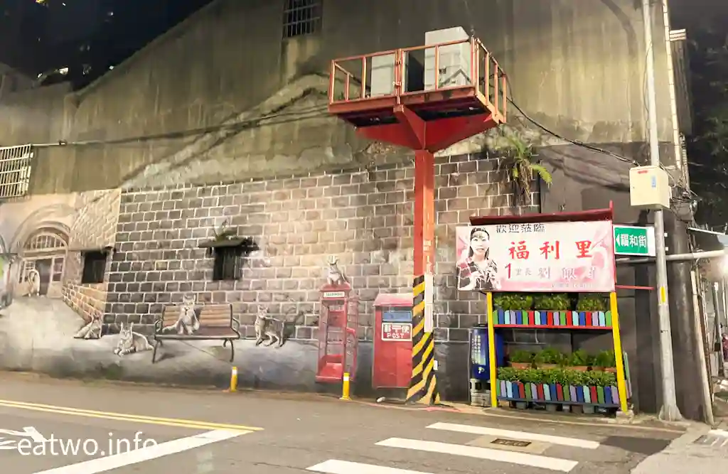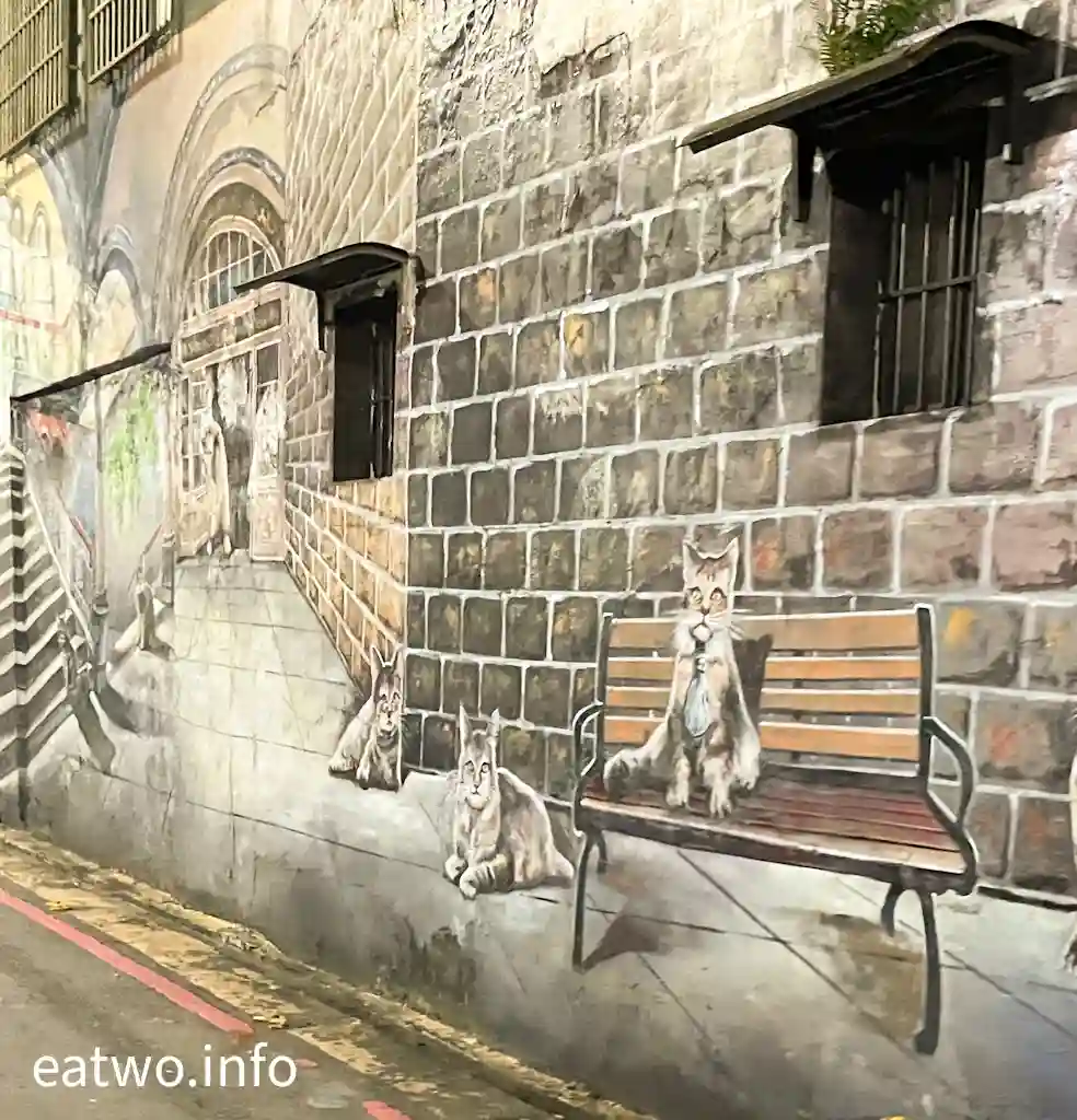 距離「三和夜市」不遠處,可以見到隱藏於大街小巷中嘅彩繪壁畫。該位置被稱為「福利里貓壁」,當中有可愛嘅3D貓咪壁畫,包含有8隻貓星人!
