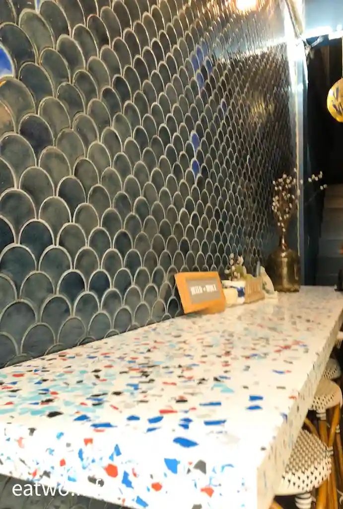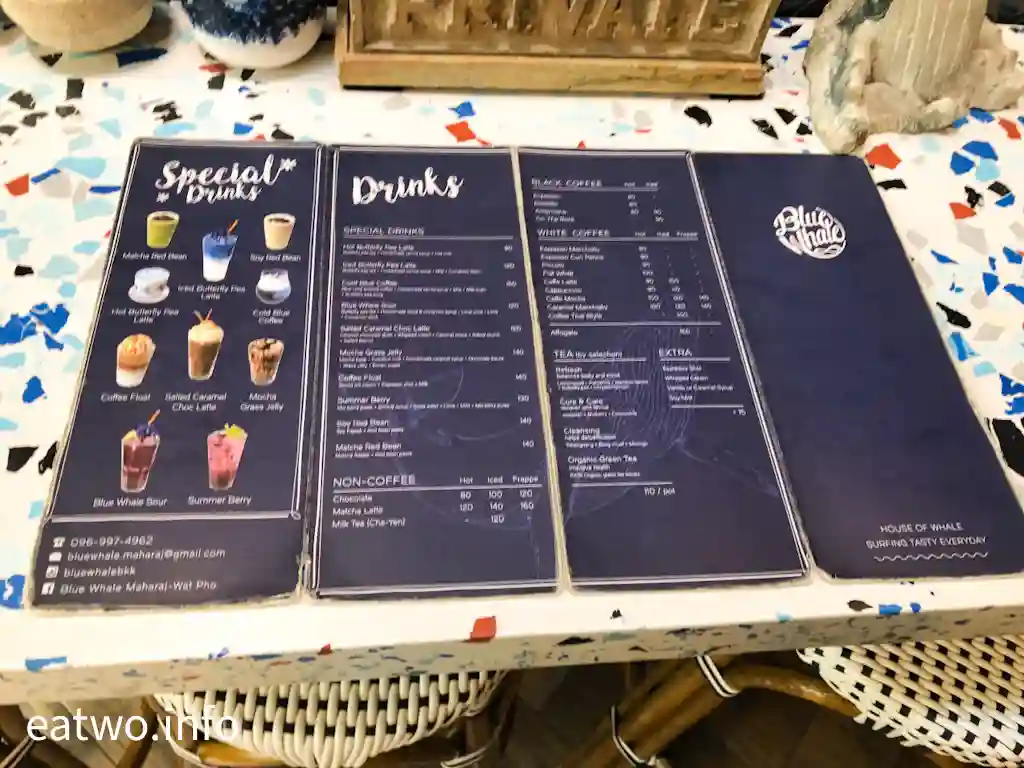 咖啡店名為「Blue Whale Cafe」,亦可叫「Blue Whale Maharaj」,夾雜於一排排居住房屋中。不過,呢間Cafe樓高2層,由老宅改建而成,用色搶眼,門面全以寶藍色設計,裝潢獨特。就連穿梭2層嘅樓梯,都髹滿海洋寶石藍,牆面更有浪花,十分療癒。