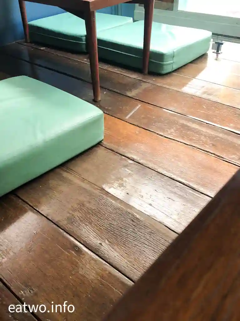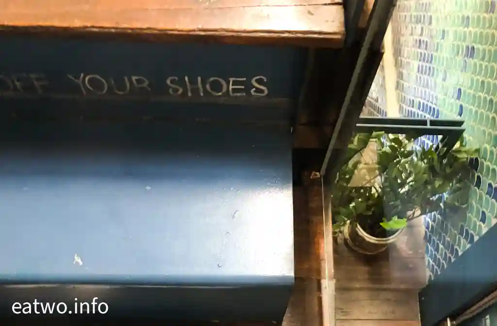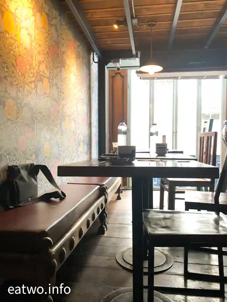店舖下層大部份位置為廚房及收銀處,只需先點餐及付款,然後就可以登上2樓用餐區。而樓上有正常座位區,亦有需要脫鞋嘅座位區,盡頭更有一個小型露台,可以俯視街景,但就未能從該小巷望到對岸鄭王廟。
