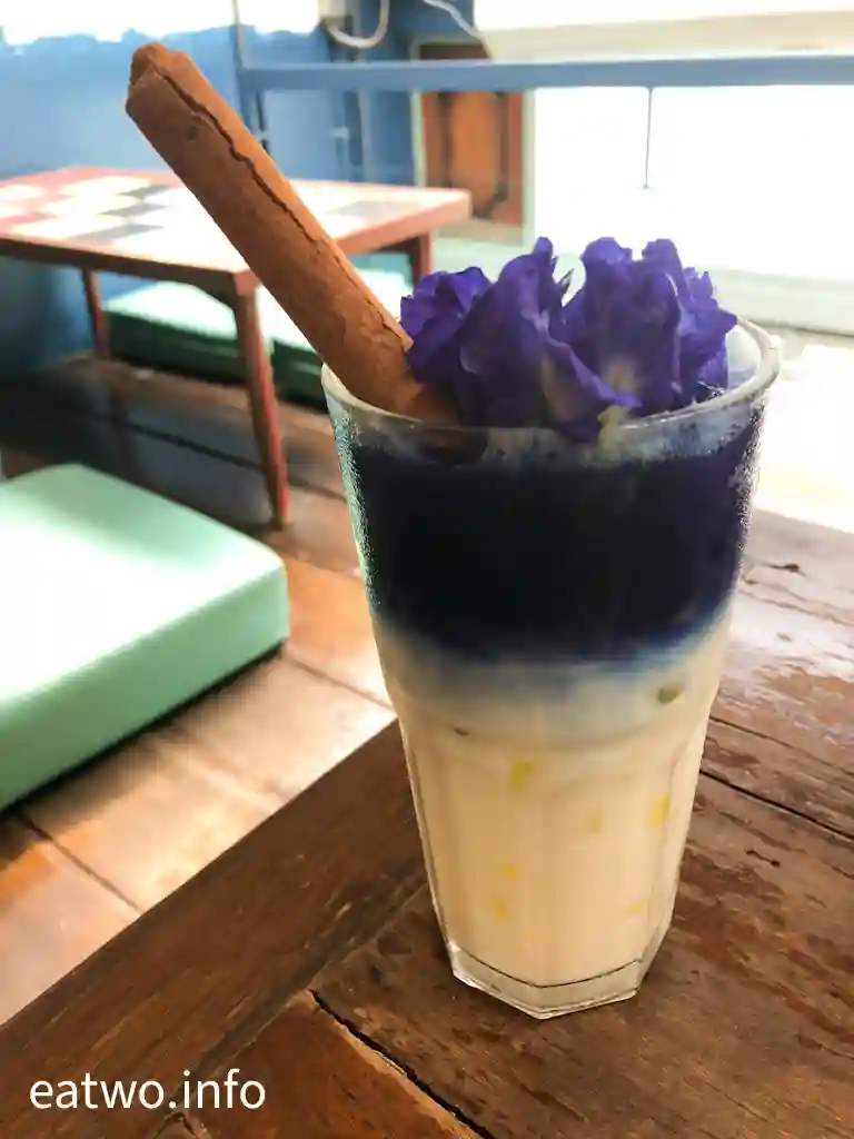 位於昭披耶河畔,有唔少餐廳及咖啡店,今次就前往其中一間用色搶眼嘅打卡咖啡店。全間咖啡店基本上都係採用藍色為主調,復古味甚濃,招牌飲品係以蝶豆花製作嘅藍色咖啡,IG打卡必備!