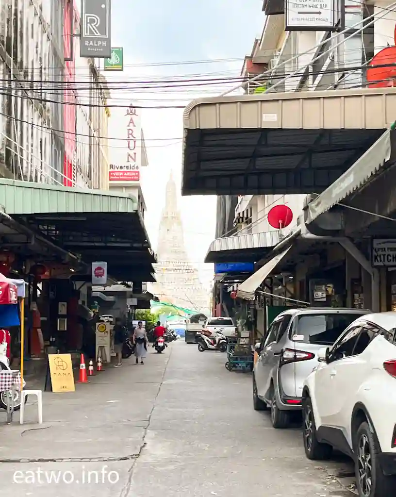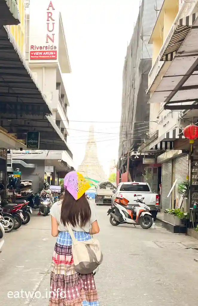 以往去鄭王廟,多數要從對岸Tha Maharaj碼頭出發,但近期MRT藍線已經延長,交通更便利,故此大家只需要乘搭MRT線,徒步即可以拍拖兩個人抵達鄭王廟。而鄭王廟縱然被稱為泰版艾菲爾鐵塔,但打卡朝聖嘅人眾多,塔身唯一開放嘅一層堆滿遊客,想要影吓相都唔容易。今次E.A.Two編輯就推薦一個隱藏打卡位,對岸一道巷弄建築群之間完全透視鄭王廟建築,即睇鄭王廟入場方法及全新最美打卡位置!
