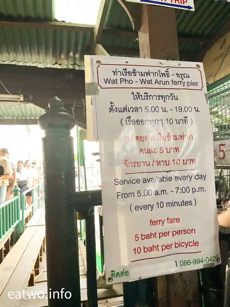 ❷ 現時於「Tah Tian N8碼頭」登船,穿過昭披耶河可以直達「Wat Arun碼頭」,船票人址為16泰銖。