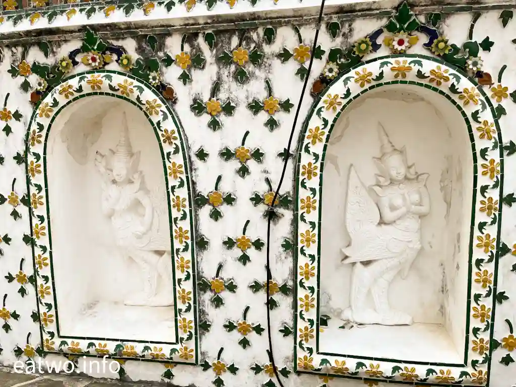 寺中為主塔,週邊則有陪塔,用色不同,比主塔明顯矮小;而塔身層數甚多,不過每一層面積會愈來愈細小,有如金字塔。主塔極其華麗,潔白而莊嚴,整座鑲滿彩色碎陶瓷及貝殼,恍如一件巨型雕塑品,而地基亦繪有大型圖畫。