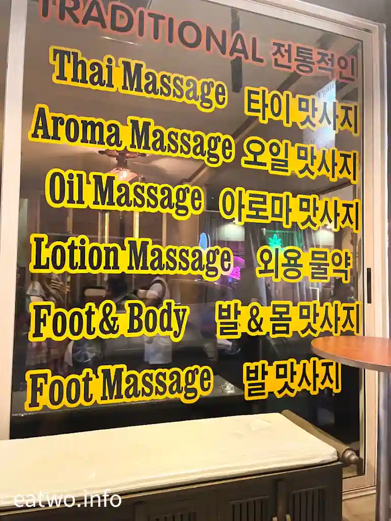 「Smile Massage」最大特色係在於大眾化,無論價錢定按摩療程都係一樣,連門口都有多種語言可以選擇,顯然除咗當地人,都係做遊客生意,連日韓文都有。多數按摩療程都係由30分鐘、1小時至1.5小時及2小時不等,有泰式按摩、足部按摩、精油按摩、椰子油按摩、香薰按摩等,以最貴嘅2小時香薰按摩計算,都只係1300泰銖,的確係比坊間平價。