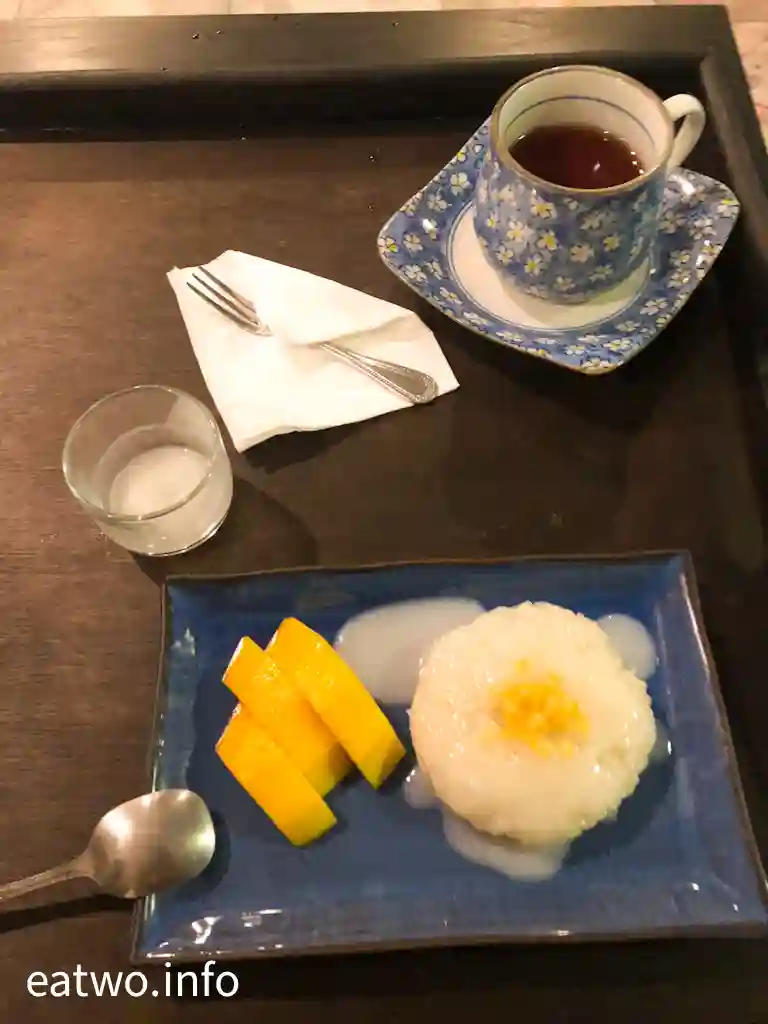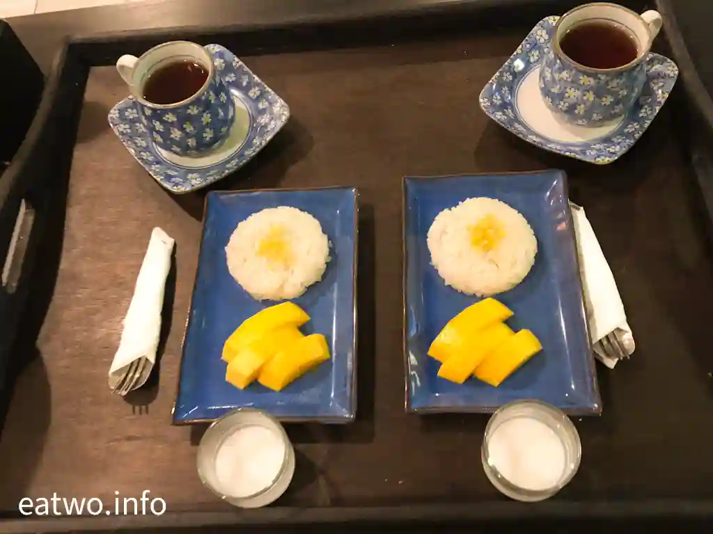只要療程服務超過850泰銖,於完成之後可以每人享用一份芒果糯米飯,另外重有一杯熱薑茶。即使一間泰國按摩店附送嘅芒果糯米飯,以當地計水平唔算高,但質素已遠比香港嘅芒果糯米飯有水準。