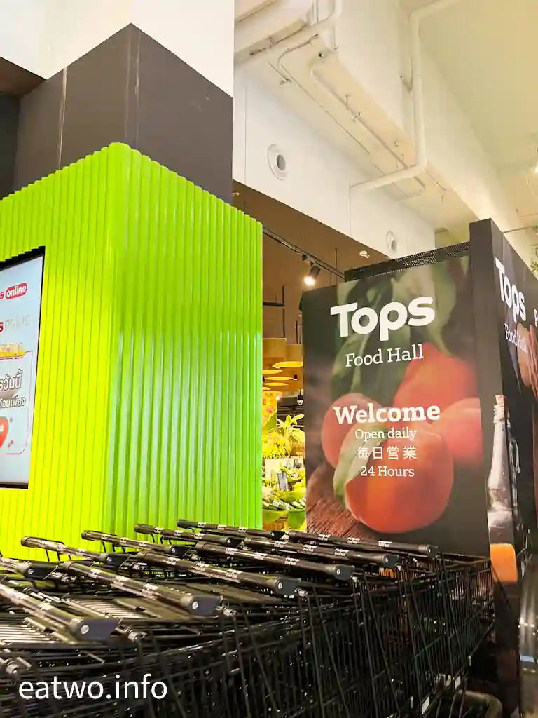於1996年創立嘅Tops Market,比Big C遲2年,但其實同樣係當地人喜愛嘅超市品牌。而Tops Market分店亦不少,全國有超過200間分店,規模不小,有一定地位。想買靚啲嘅手信,可以到Tops Market,不過要留意唔係間間都係24小時營業。