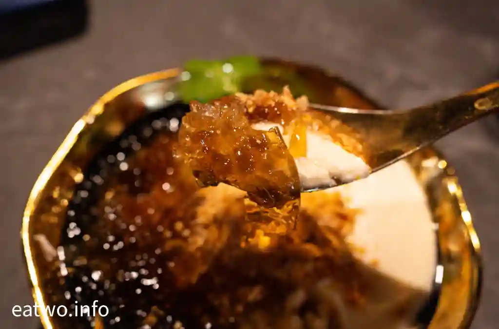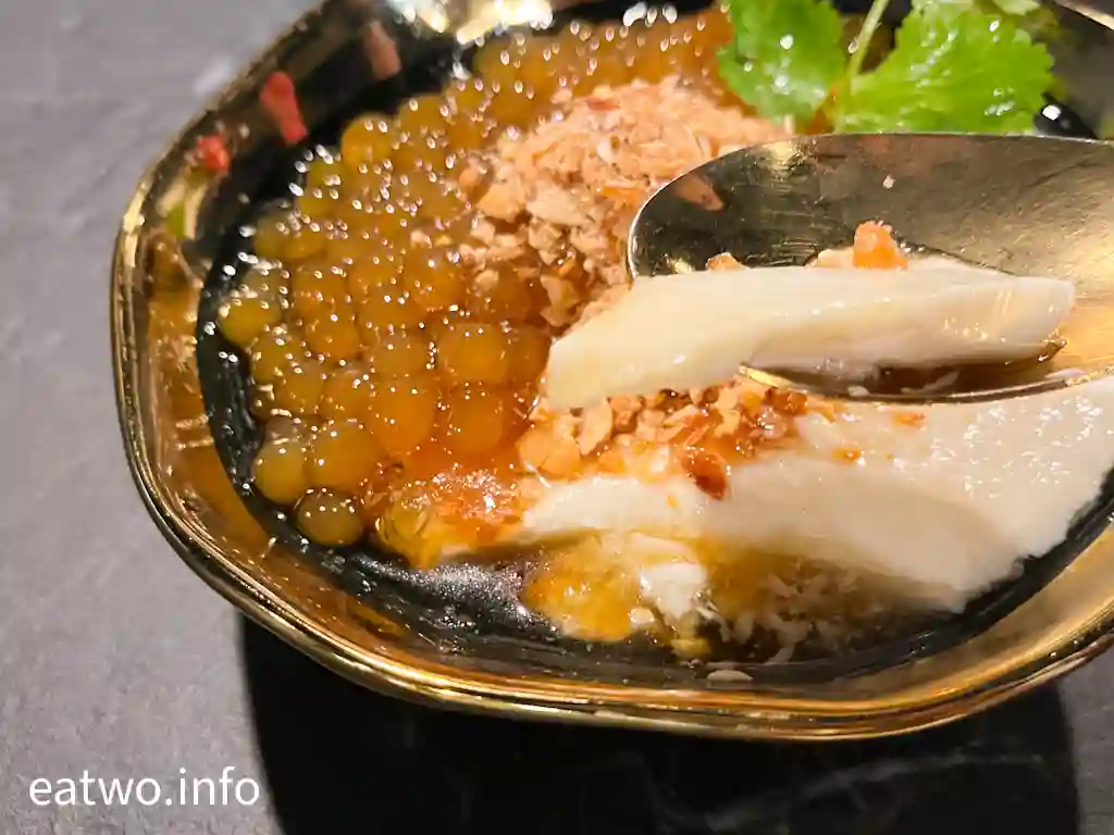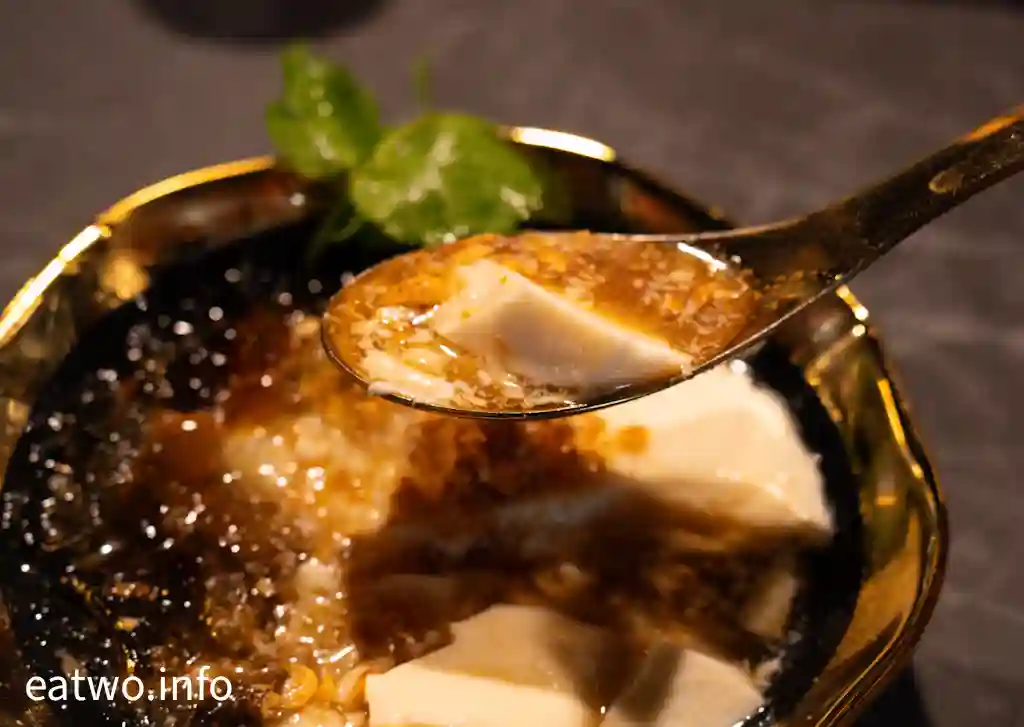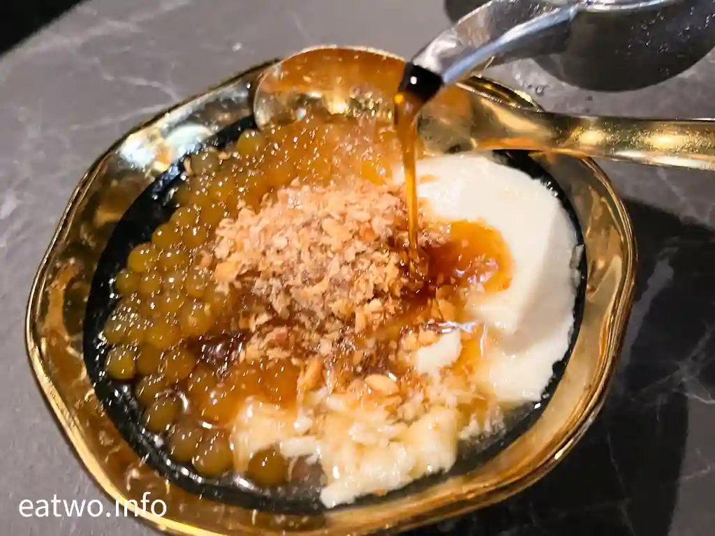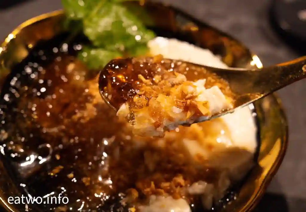 兩碗白水豆花表面大致無異,只係內裏配料稍有分別,一碗係粉圓,另一碗係仙草。花生經過烘烤,而麥芽糖與黑糖豆花等亦配合得天衣無縫,取代咗港式豆腐花嘅黃糖調味,更可以自行添加糖漿。而豆花入口細緻滑嫩,甘甜有豆香,基本上只有水、黃豆、凝固劑,但以古法直烤煮漿,溫度與濃度都調配特恰到好處,加入配料就係純正台灣口味。
