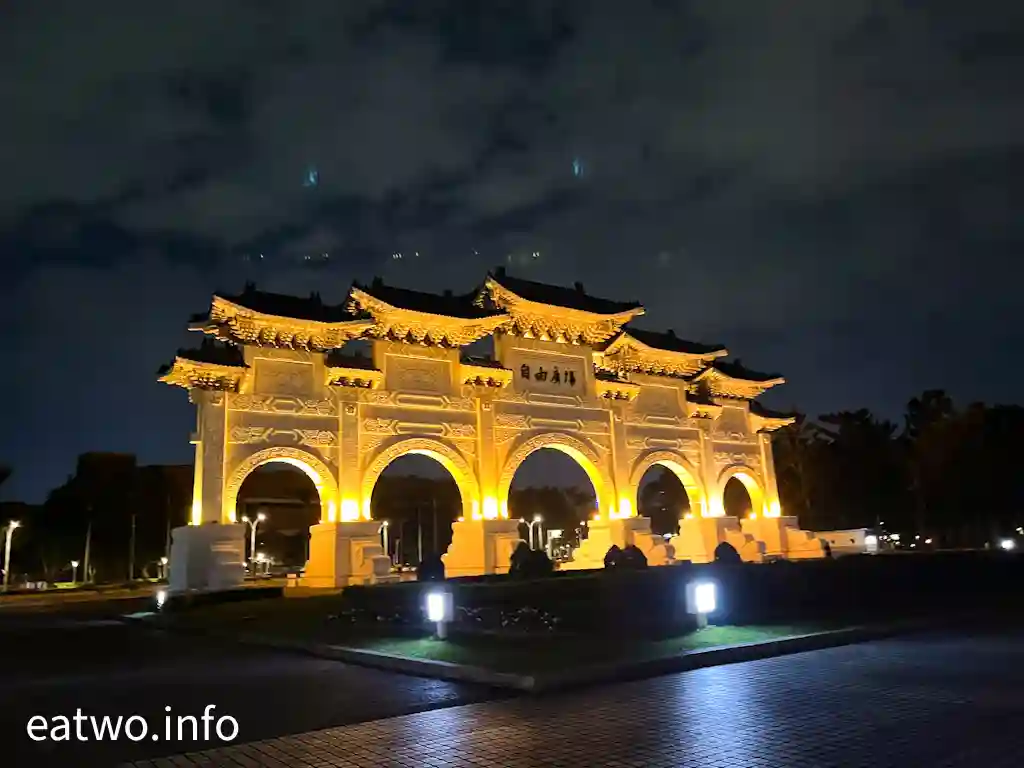 台北中正紀念堂係中華民國政府嘅重要建築物,為紀念前總統蔣中正。建築物高約70米,於1980年建成,屬國定古蹟,外觀有如北京天壇等宮廷式建築,莊嚴宏偉。當中,有大理石、琉璃瓦等,滿園紅花配搭寶藍色瓦片,就象徵青天白日滿地紅。兩側有藝文廣場、週邊有國家戲劇院、國家音樂廳,入面重有古式庭園造景及湖景。當然唔少得香港人都好熟悉嘅自由廣場,牌樓高約30米,清晰可見「自由廣場」四字,唔少大型藝文活動都會於此地舉行。