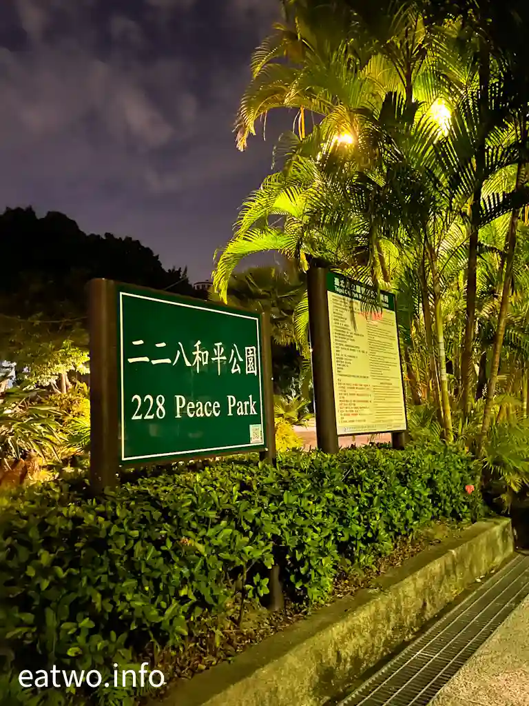 距離自由廣場不遠處,可以前往「二二八和平公園」,該公園又叫台北公園,用作紀念二二八事件。地方偌大,靠近總統冷、臺北賓館等,於1903年已經規劃好。公園將日式與西式風格融合,二戰後再變成中式庭園,但至今亦不乏日式古建築群。