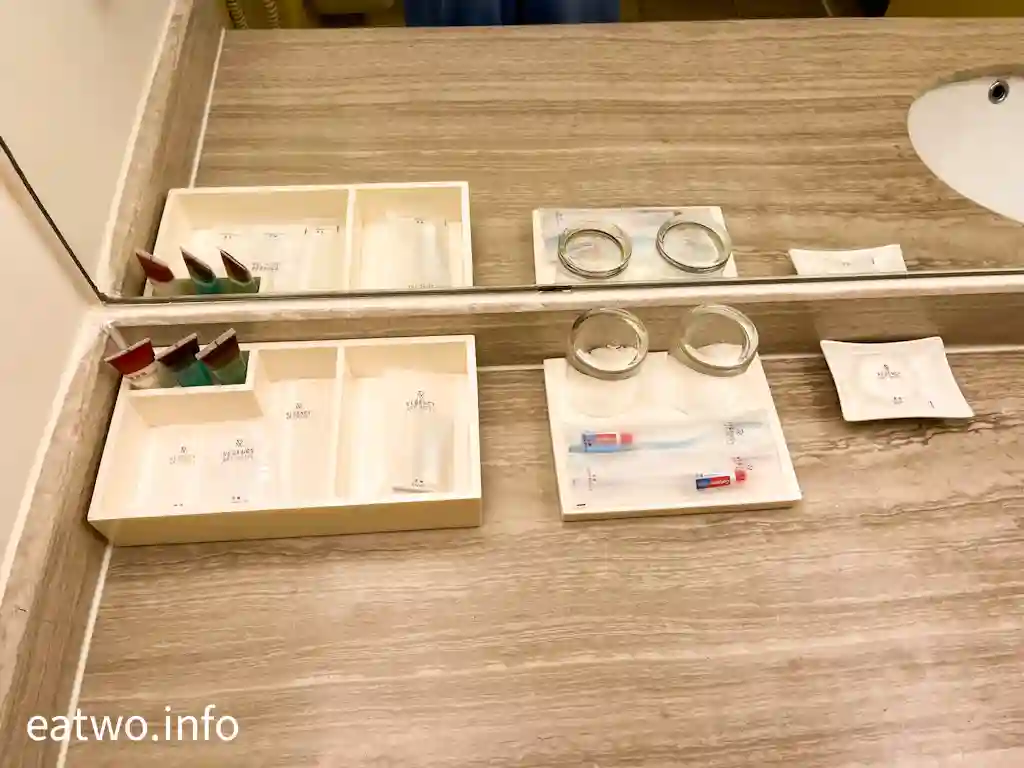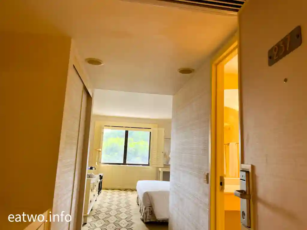 原來酒店係一所5星級酒店,內有325間房間,一邊係望「新世紀娛樂場」方向,另一邊就係望海景。當日太夜check in,以為無海景房,實際上其實一樣有海景房,估計係人數較少。房間內地方唔細,浴室亦有足夠空間,基本上四四正正,亦算企理,寬敞舒適。浴室有即棄衛生用品提供,而房間插頭頗多,只係需要自備幾個插頭。