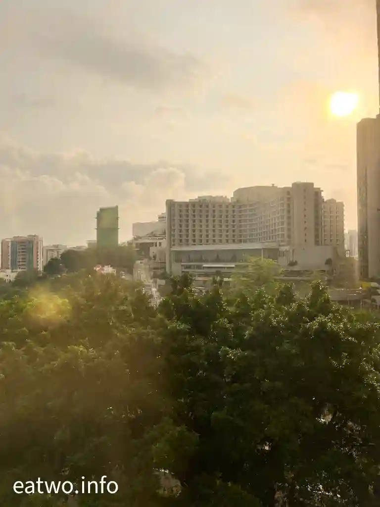 從澳門官也街前往酒店,需要先經過花城區,徒步大概15至20分鐘就可以到達酒店大門口。酒店位處氹仔最北端,其中一邊房間為海景房,座落澳氹大橋出口,一整排房間都能夠望180度大海景,更可眺望對岸澳門半島,「葡京酒店」、「新葡京酒店」、「澳門旅遊塔」、「澳門美高梅」、「西灣大橋」、「友誼大橋」等。