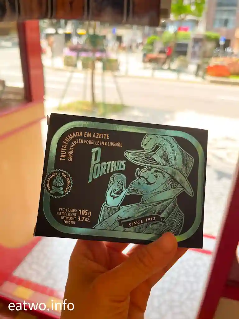 呢間名為「老人牌」嘅澳門中葡沙甸魚文化專門店,門口亦清楚寫為「Porthos Macau」。事實上,該店係來自於90年代,老人牌沙甸魚罐頭係從葡萄牙引入澳門,充滿葡國風味,係全亞洲首間門市。包裝設計亦非常吸睛,設計獨特,外表美觀型格,編輯亦忍唔住買咗盒鱒魚罐頭。