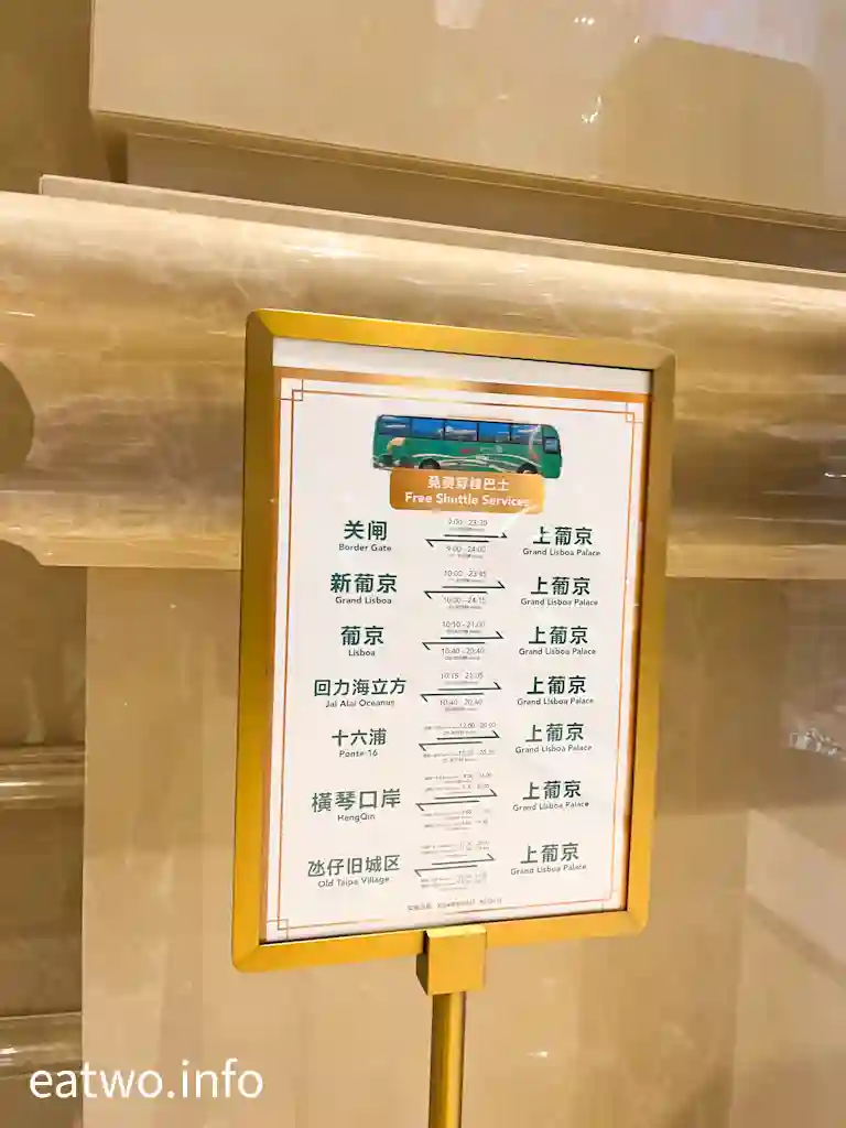 澳門酒店穿梭巴士又叫「發財車」,可以來往該酒店同各入境口岸、碼頭同機場,多數「發財車」最早班次都係09:00,最夜班次則為23:00,大概要預計每15分鐘一班車。