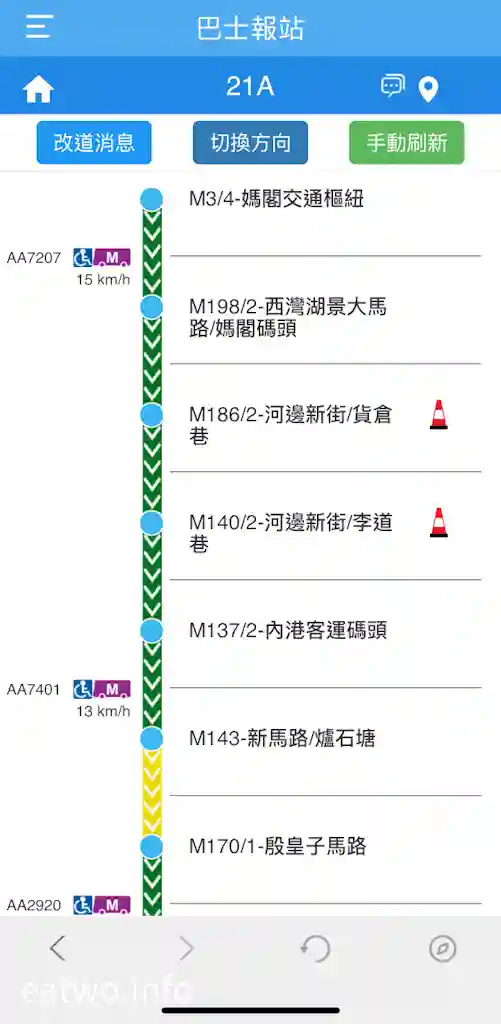 ❸ 巴士報站app可以睇到澳門巴士路線,但其實google map一樣可以睇到巴士路線同到站時間,只不過app巴士位置比較即時啲,google map有少少參差。