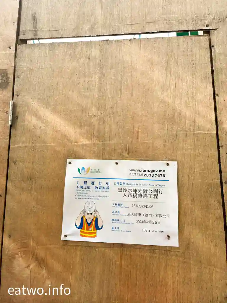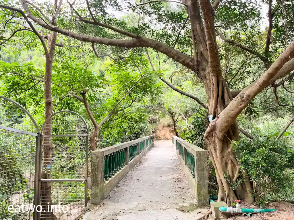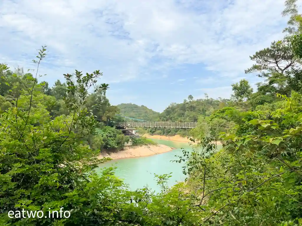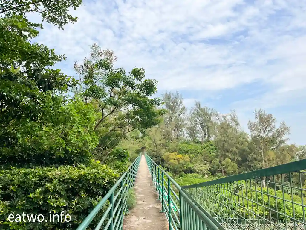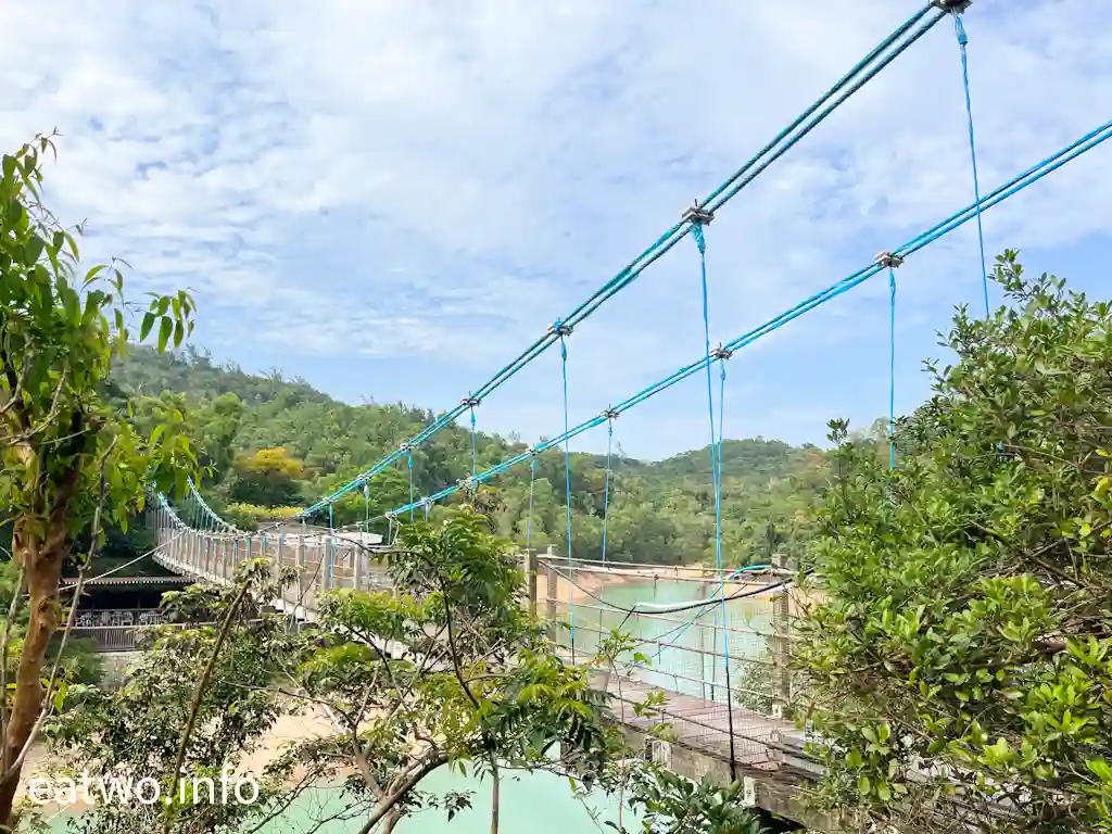 原先郊野公園有一座吊橋,打卡必到,不過當日因修護工程暫停開放,卻未有完工日子,所以幾時開放就不得而知。走到水塘週邊山路,可以欣賞水塘同吊橋風景,亦可以前往吊橋另一端,吊橋就能橫跨水塘。呢條木製吊構全長只係得約60米,吊橋位處於水塘中央,如果企喺中間,應該係吸睛打卡位。