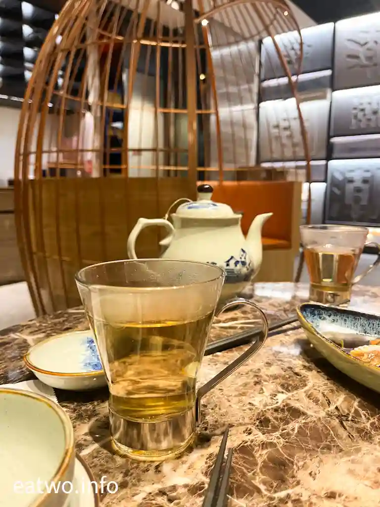 若非同行有人帶領,編輯點都唔會進入呢間餐廳,皆因門面極狹窄,而且唔明顯,根本難以見到。況且,從來未聽過「天潮」呢間餐廳,連門面設計都有一種難以吸引嘅感覺。上行樓梯,發覺樓下茶記有唔少客人,但樓上餐廳座位則空無一人。室內嘅大理石牆壁、地板,都令人感覺想走高檔路線,中間甚至有3個鳥籠設計嘅座位,整體係將中式同現代風格融合,連檯面都係以中式器皿為主。