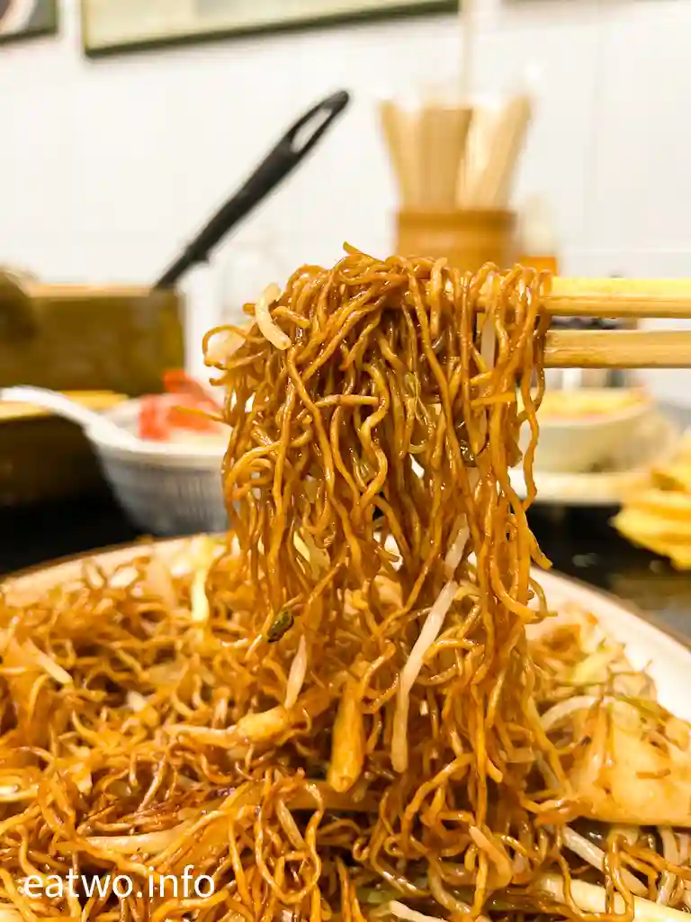 招牌蝦籽撈麵MOP65 採用傳統竹昇麵,一間大排檔好唔好就要睇炒嘢夠唔夠鑊氣。今次就揀乾炒魷魚麵MOP68,麵條的確係傳統製作竹昇麵,夠晒彈牙,而且係有韌度,不過最大問題係炒麵有無控制時間。呢碟炒麵食唔到蛋味,因為燶味四溢,完全係炒燶嘅味道,而且醬油好鹹,除此之外,已經食唔到魷魚同麵條有咩味。
