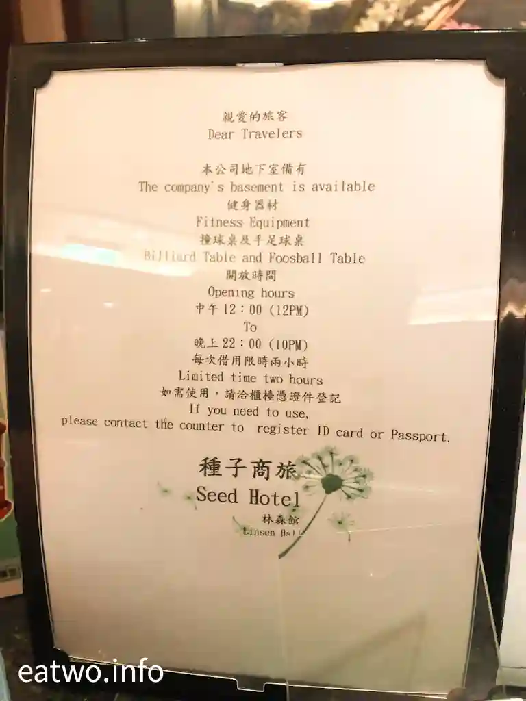 原來該飯店設有撞球檯同手足球檯,台灣嘅撞球即係香港嘅桌球,可以借用,但每次只張2小時使用。不過,桌球檯設於用餐地方,最騎呢係桌球檯不時會被當作正常檯擺放物品。如果一個喜愛玩桌球嘅人,大概唔會嚟呢度打波。