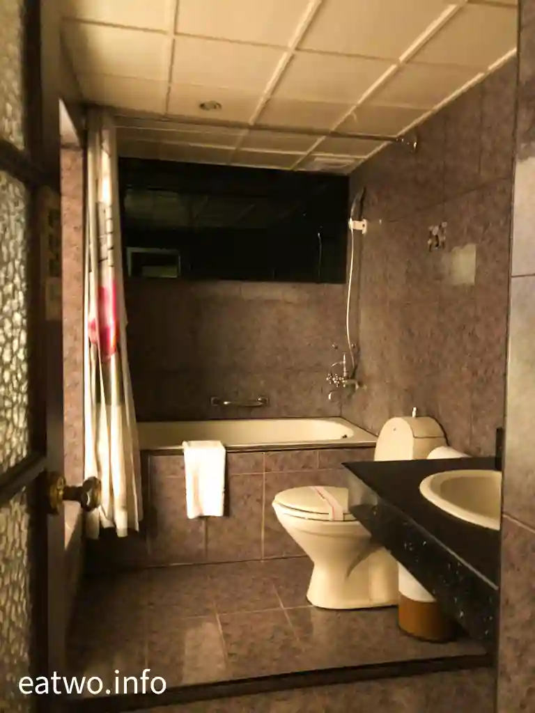 房間設計古舊,燈光亦比較昏暗,大窗只係外望樓景,無乜特別,所以長時間都係拉埋窗簾。房間地方唔算大,但浴室就佔房間三份一空間,廁所隔離有浴缸,不過雲石地板有啲跣,要舖返條毛巾喺地下先得。
