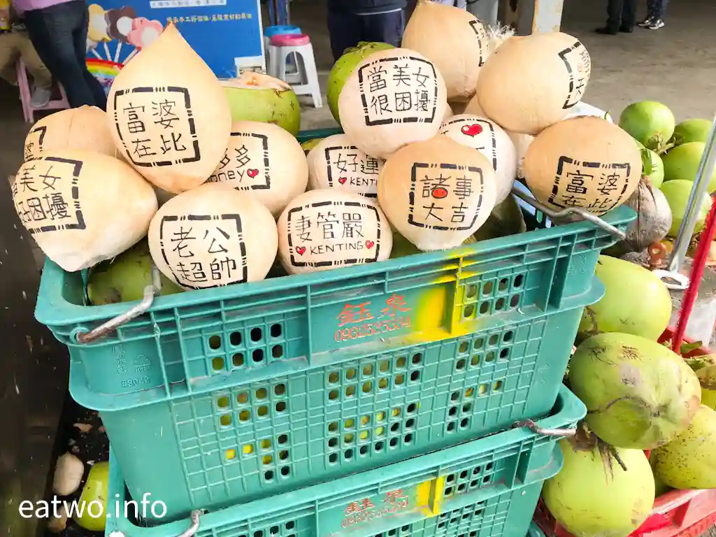 折返售票處入口時,發覺「鵝鑾鼻」一隅同時設有一道小街道,有一排店家售賣各式各樣嘅紀念品,亦有少量小吃店可以選擇,比如係椰子水。