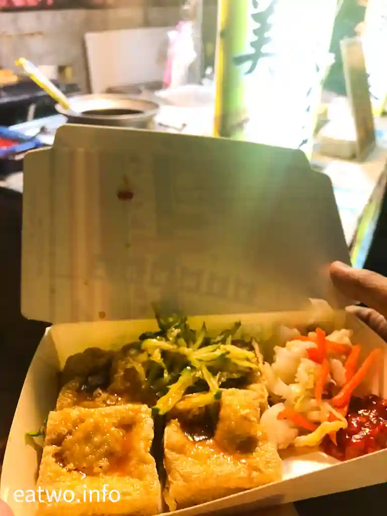 夜市內排隊小吃美食不系,包含有滷味、臭豆腐、脆皮湯包、炭烤香酥肥腸、香蕉煎餅,亦有烤魷魚、炸雞、泡芺、手工冰淇淋、pizza、珍奶等。