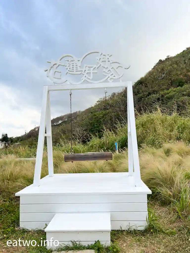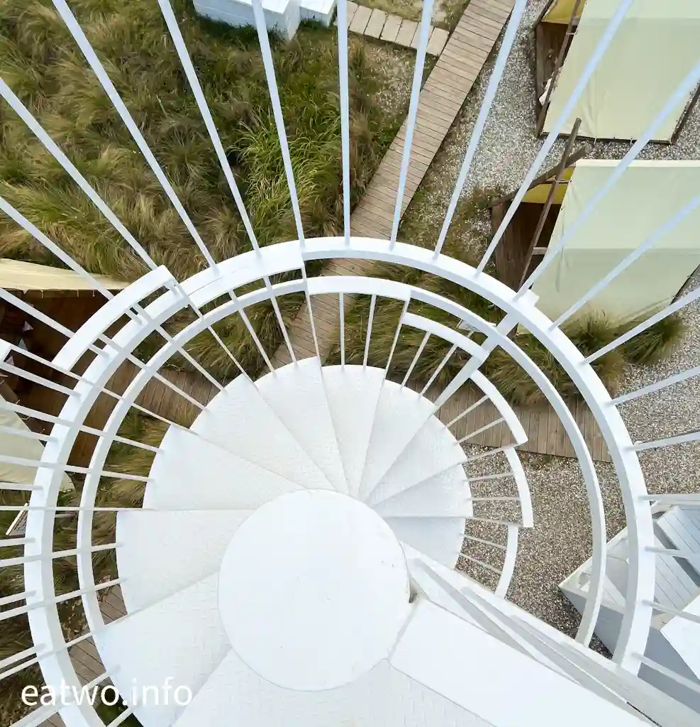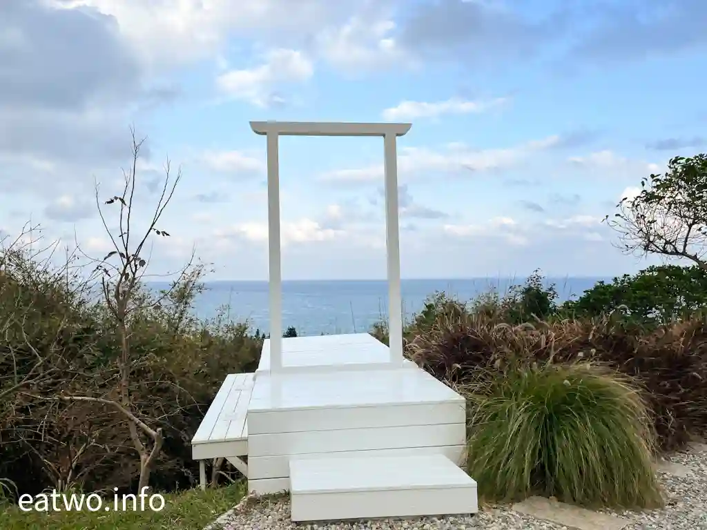 打卡裝置中,唔單止有一座天堂之門,純白色大門媲美剛才嘅天空之鏡韆鞦架。另一邊廂,重有一座潔白旋轉樓梯,登上樓梯頂,更可以從最高點俯瞰花蓮東海岸風景!