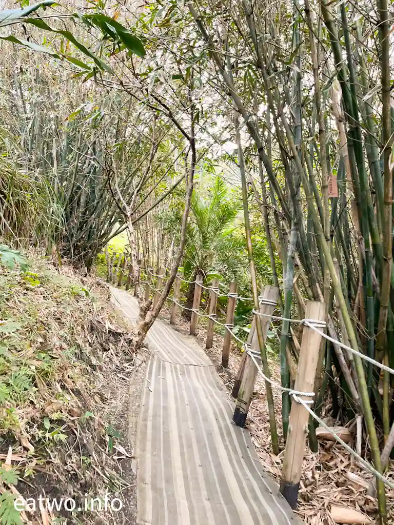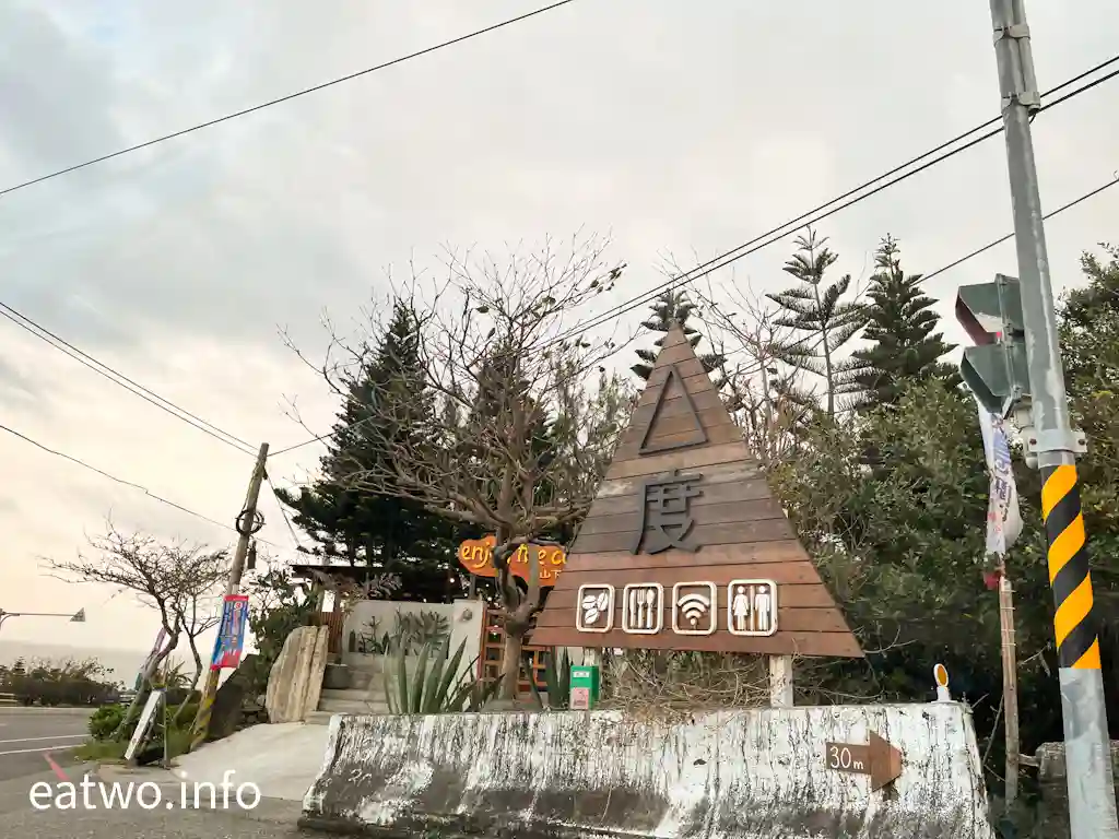 台灣嘅人氣打卡位顯然非常用心,唔會好似香港咁隨意。馬路口擺放有三角形狀logo,設計恍如帳幕,難免令人聯想到露營風格。從地面上行,皆為小山坡路段,當中有小石級,而該店於山坡上舖有布料,側邊亦設護欄,感覺係為客人安全而設。
