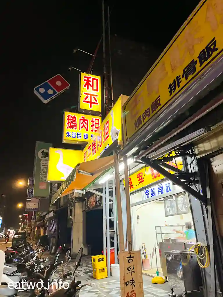 穿過花蓮市區中正路,會發現呢間「和平鵝肉担」,表面平平無奇,實際上係花蓮一間老店,亦係在地人一間喜愛嘅宵夜店。雖然上方有一塊小牌寫住由下晝5點營業至凌晨2點,但從。該店唔單止寫明選用台灣豬,更特別註明選用花蓮木村屠宰場現宰鴨鵝,難怪人流絡繹不絕。