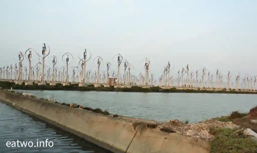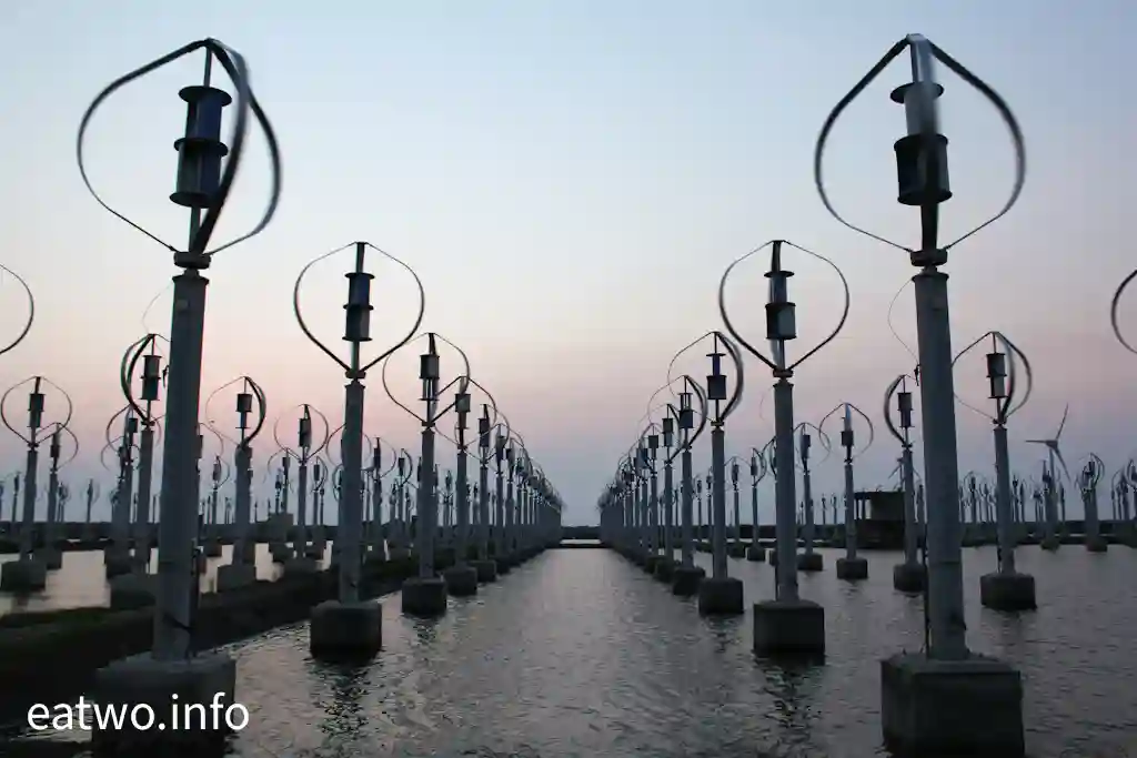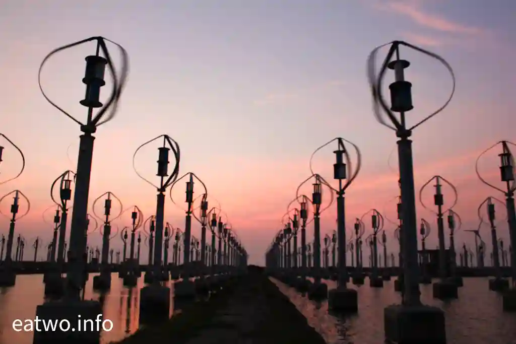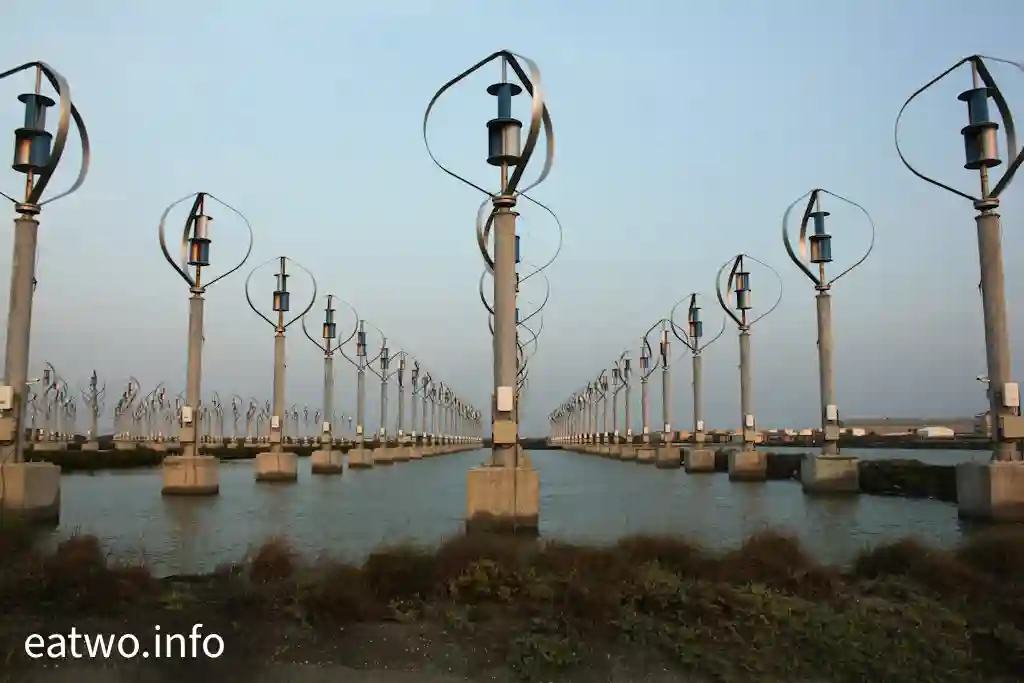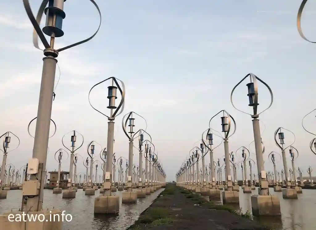 據了解,現場係有超過400座直軸小型風力發電機,造型似足小風車。細心留意現場嘅一個個風車,發覺風車狀似蛋形,每座高約4米,並非平常見到嘅三支長條狀拼湊而成嘅風車形,造型頗為獨特。而風車內嘅風軸葉片必須要經空氣流轉先會旋轉,會經風產生能源,再推動發電機,最後會產生電力,係一種天然嘅發電能源。