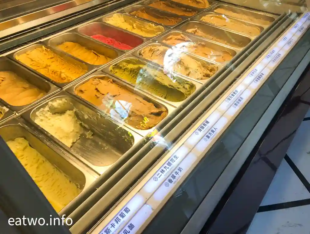 宮原眼科雪糕足足有54款可以選擇,每兩球雪糕大概TWD260。雪糕當中,有三份二顏色眾多,單單茶味雪糕都有排揀;有三份一就以啡色為主,大多係可可、朱古力、咖啡等口味。