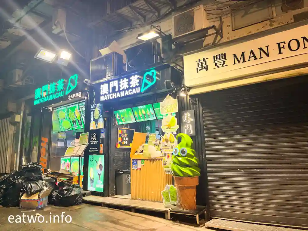 位於澳門「大三巴街」中段一道小巷內嘅「澳門抹茶」,夏天可以食冰凍抹茶雪糕,冬天可以食熱焫焫抹茶葡撻。只要前往「大三巴餅家」,就可以進入旁邊小巷,盡頭樓梯旁邊就係澳門抹茶店,頂端招牌直接寫住「抹茶」。
