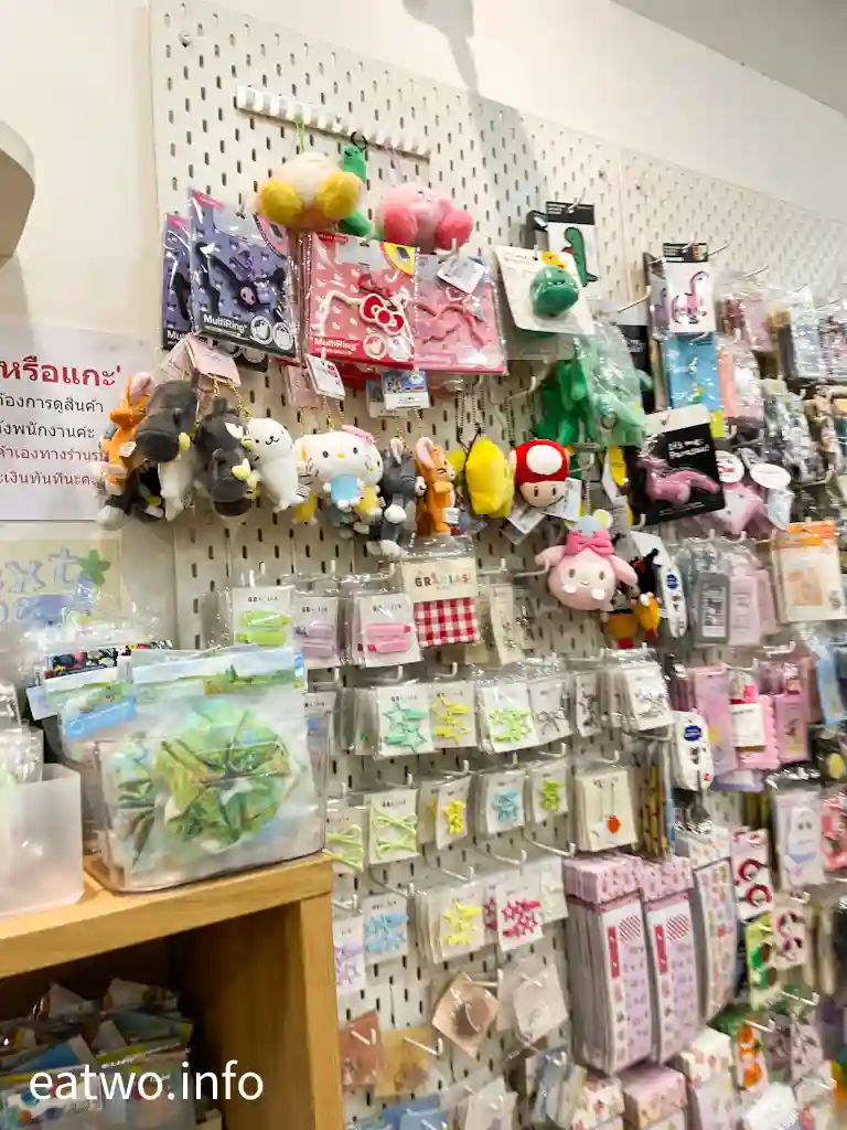 該店嘅商品並非係好平價,需要自行尋找先會有機會搵到想要嘅商品,唔少係泰國進口貨品。以Hello Kitty為例﹐大隻嘅公仔需要過千泰銖,細隻都六七百泰銖,再細啲折合港紙都要近二百蚊。除咗公仔,亦有手機繩、證件包等,但公仔價格上其實都唔係太平。