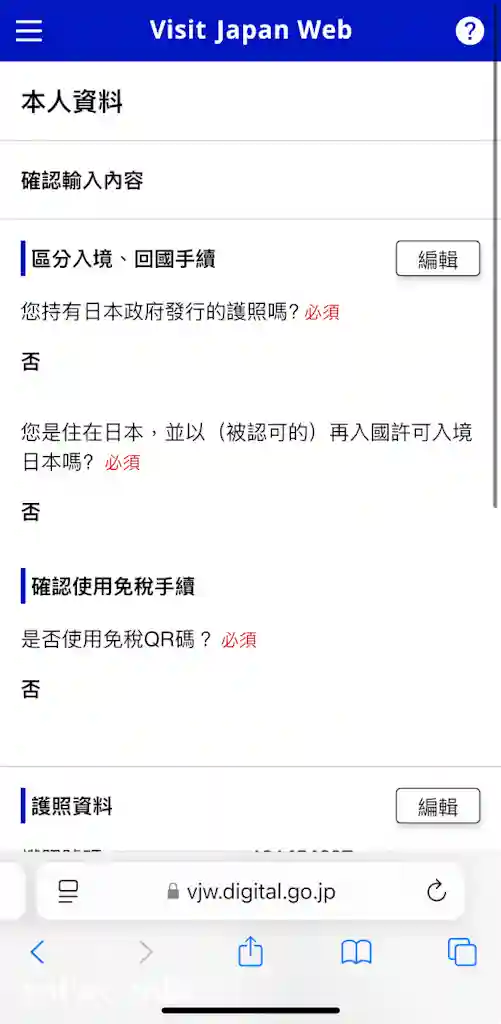 再登入「Visit Japan Web」,只係需要填寫個人資料,然後填寫護照資料或直接拍攝護照。嫌麻煩可以為護照影張相,系統就會自動偵測護照上嘅資料。不過就算唔影相,都可以自己手動填寫護照上嘅資料﹐包括護照持有人姓名、性別、出生日期、國籍同護照號碼,使用BNO入境嘅話,平時退稅用G字頭好長嘅名稱做國籍,今次就有獨立名稱British Overseas可以選擇。另外,同一欄內亦可以填寫同行家人資料,如果有小朋友或長者,最好填寫埋呢一欄。