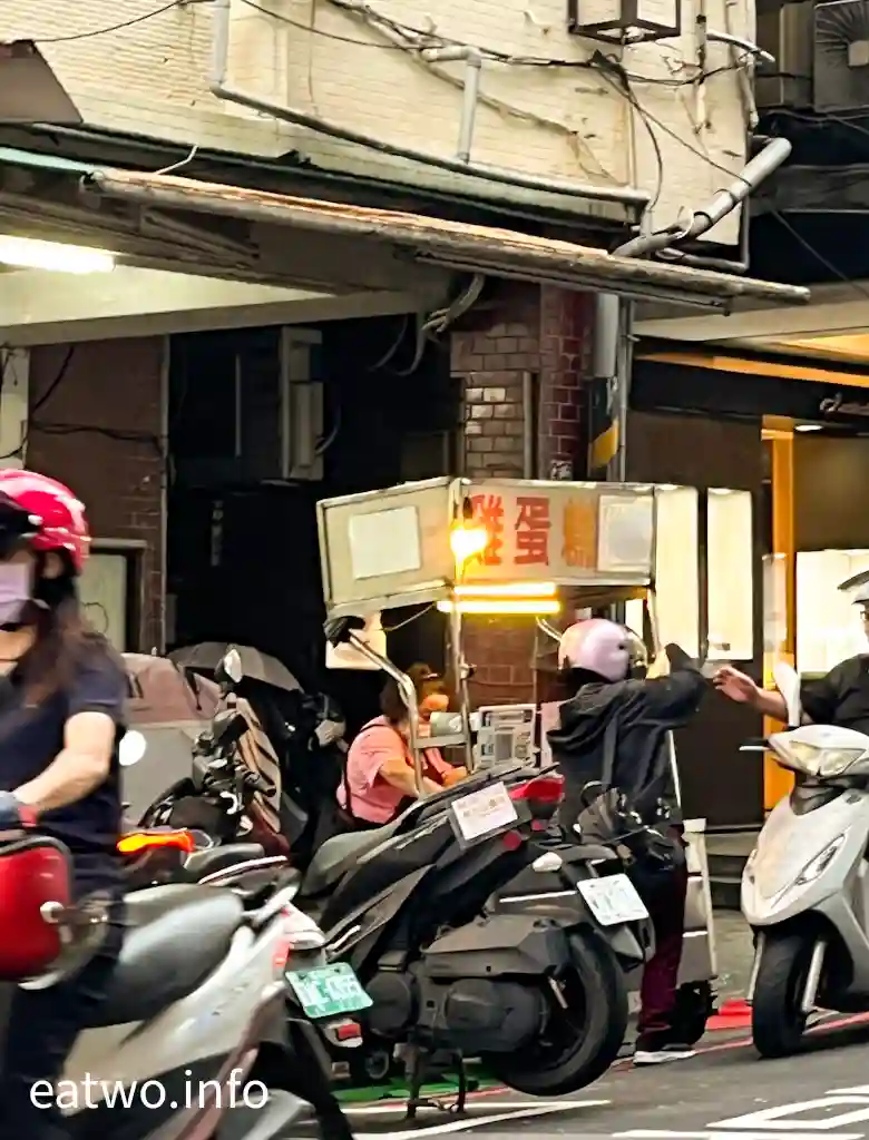 甫踏有「737美食街/737夜市」,會見到右邊有間頗大嘅「內湖春天藥局」,該巷弄同時係一道車路,而藥局對面就有一間轉角無名雞蛋糕店,車仔攤檔上並無名字,只寫有價錢。雞蛋仔檔外有好多架機車停低等雞蛋糕,每份雞蛋仔只分小份同大份,價格為TWD25至35,相當平民。