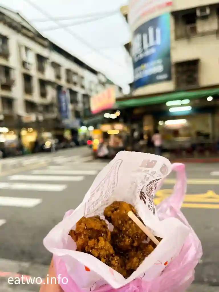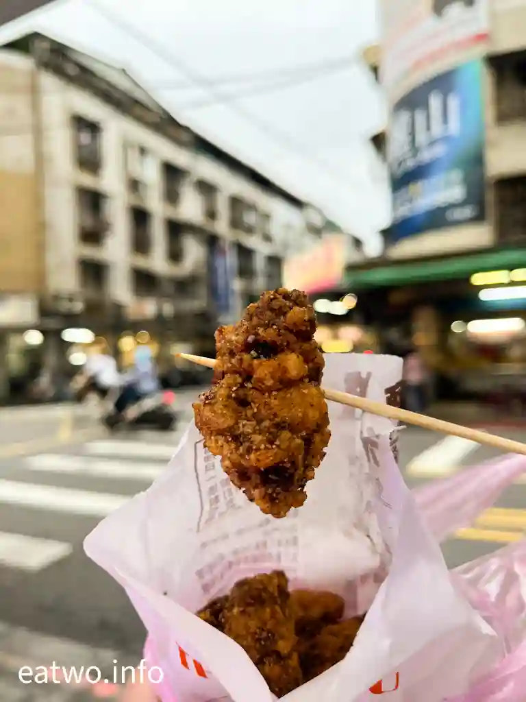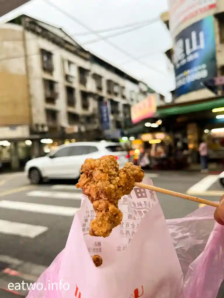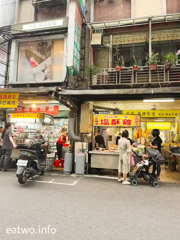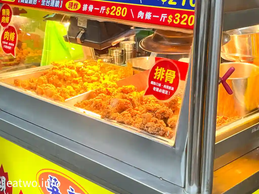 繼續沿737巷弄前行,就會見到「台灣第一家鹽酥雞」,招牌上寫有沾醬雞排,車仔攤檔內有唔同炸物小吃,旁邊都有價格,每款由TWD15起,而鹽酥雞一份就賣TWD45。