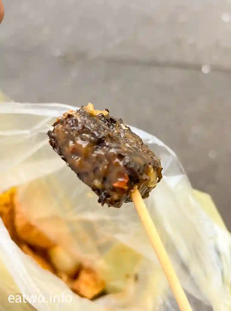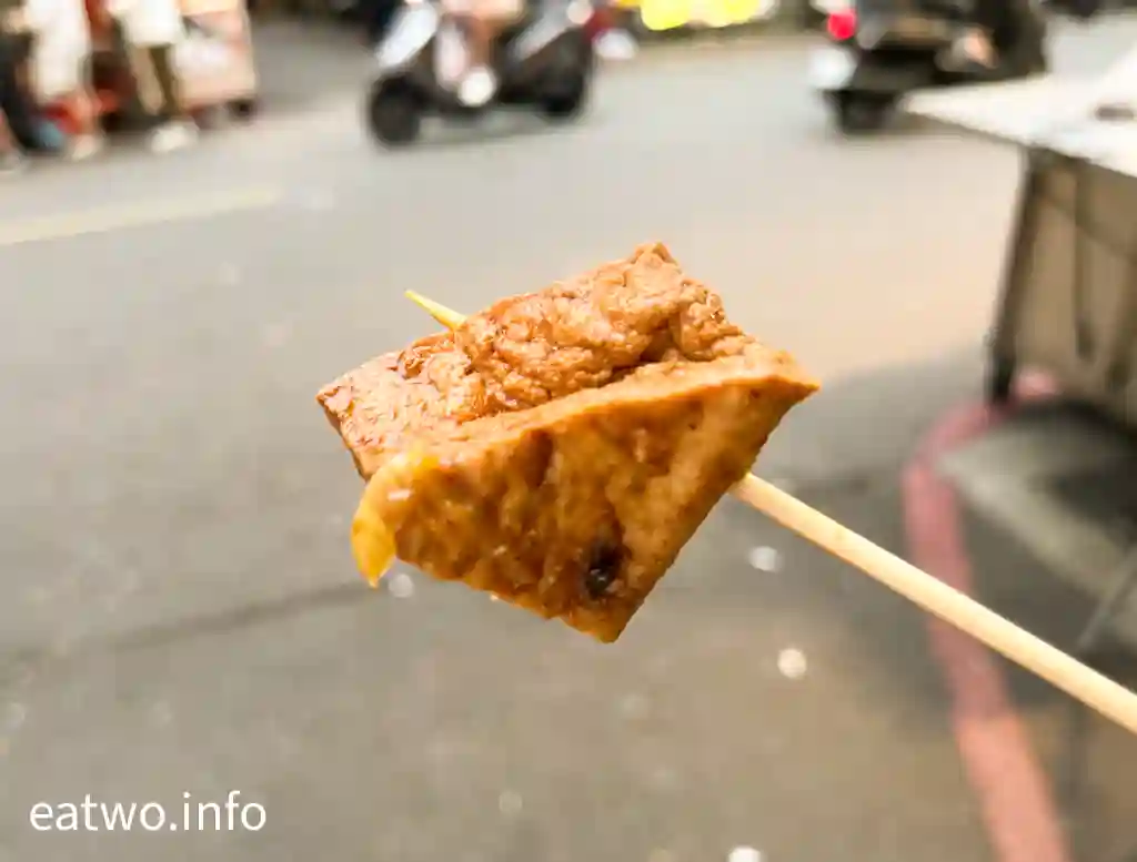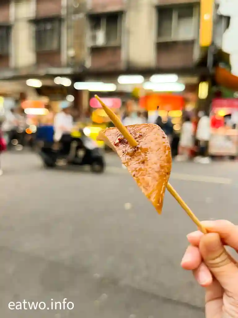 再向前走,於同一邊會見到一間「豬大郎豬血糕」,小攤內售賣古早味濃厚嘅純手工豬血糕,可以自選辣度,據知目前一支豬血糕已漲價至TWD45﹐當日見到唔少在地人一次過買3支豬血糕。