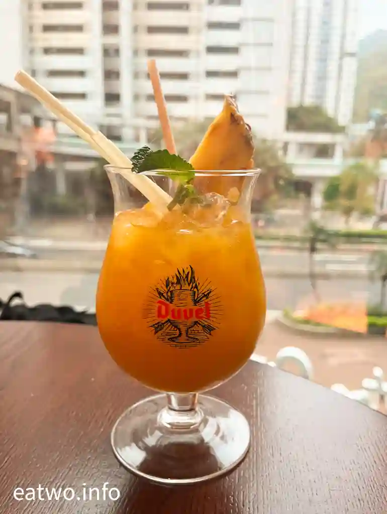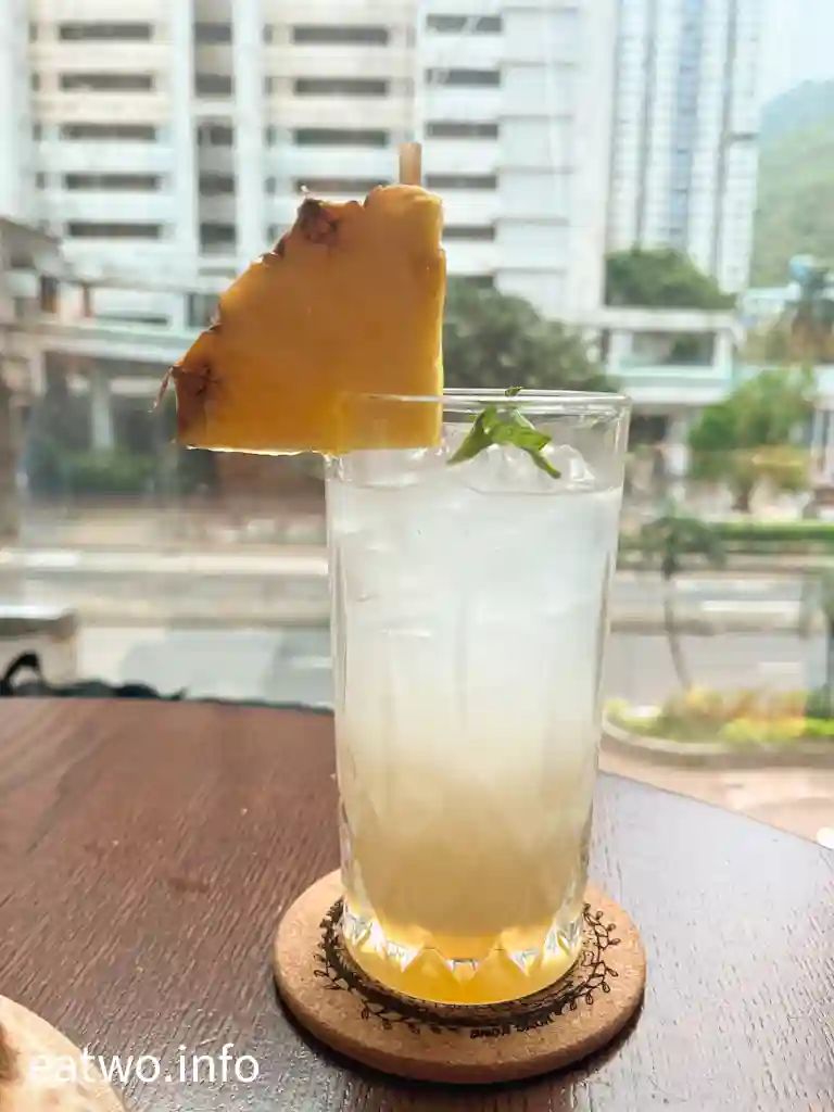 由於無套餐可以選擇,所以飲品同小食必須單賣,有部份飲品睇落頗特別,比如係燒菠蘿椰子微風輕吹$58、沿途芒出車外$58,計埋飲品埋單大概係$400左右。燒菠蘿椰子微風輕吹即係一款菠蘿椰子梳打,上方有一塊輕輕燒過嘅菠蘿點綴,椰子味並唔算重,反而菠蘿味比較多,所以係比較清爽。至於沿途芒出車外,則為一杯濃郁芒果汁,入面加入香茅、香草,好重芒果味,整體感覺似一杯泰式飲品。