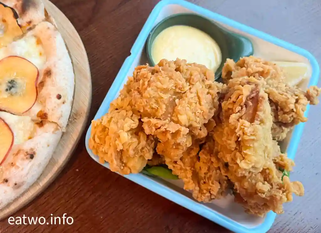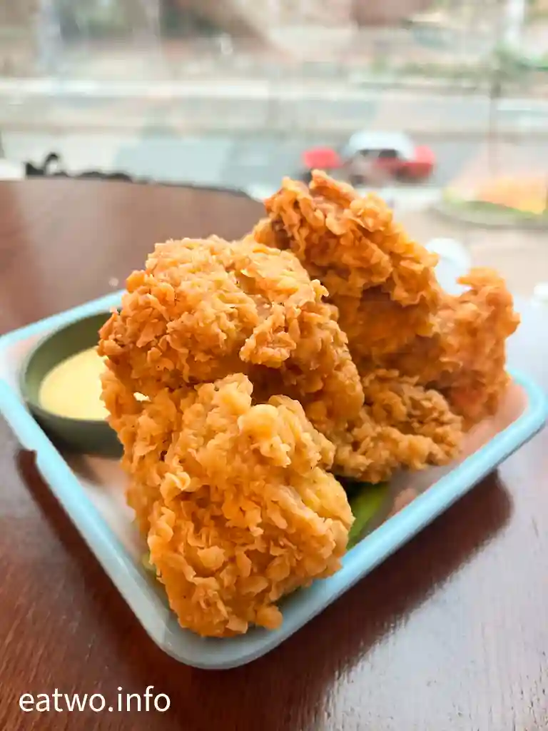 「Jacomax」將軍澳店限定菜式並唔算多,比如係加菲貓最愛牛肉醬千層麵$168,另一款將軍澳分店限定嘅係自家製炸雞配蜜糖芥末醬$128,一份炸雞有6件,旁邊佐有蜜糖芥末醬。炸雞原來都唔伏,炸成金黃色,外脆內嫩,蘸上蜜糖芥末醬可以減去炸雞油膩感。