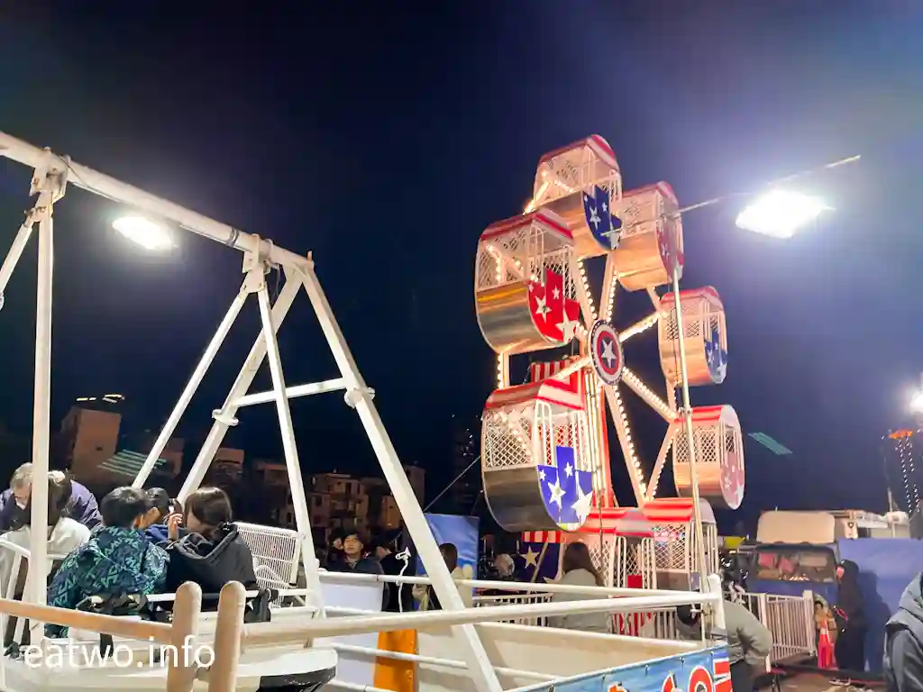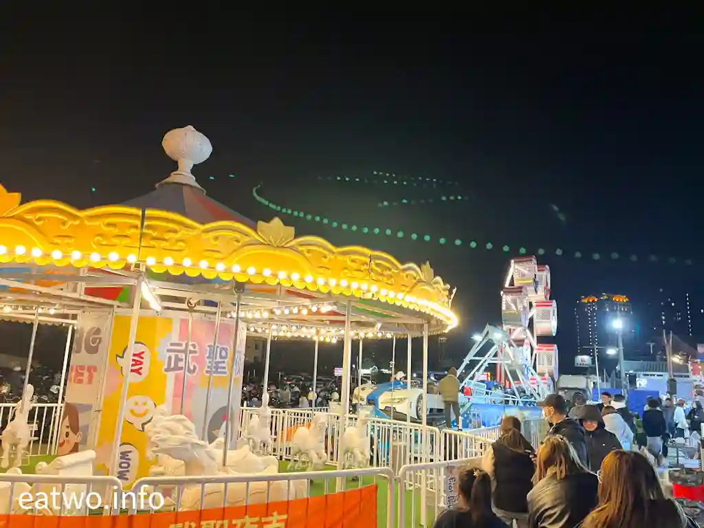 「武聖夜市」有一個恍如迷你遊樂場嘅地方,比如係小型摩天輪、旋轉木馬、海盜升船、飛天汽車,吸引唔少學生同一家大細前往。夜市遊樂場每項設施玩一次一律只係TWD60,套票則為TWD200,每張套票可以任揀4種設施去玩。