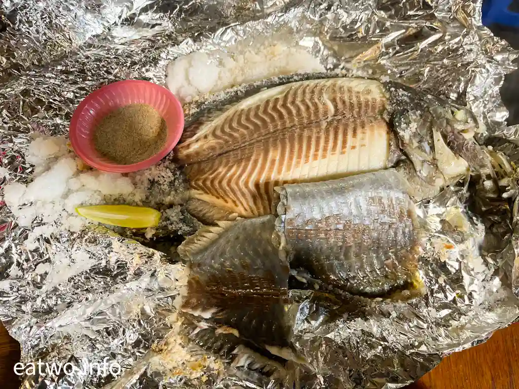 今次E.A.Two就被「戲漁蒸鮮烤魚」吸引,一份鹽封台灣鯛TWD250,為原條製作,寫明新鮮海物專賣。不過,點餐後要等半小時,記得拎號碼牌,確認時間到時返轉頭食就得。只需要keep好號碼牌,唔使怕過號,因為認牌唔認人,以牌換魚。