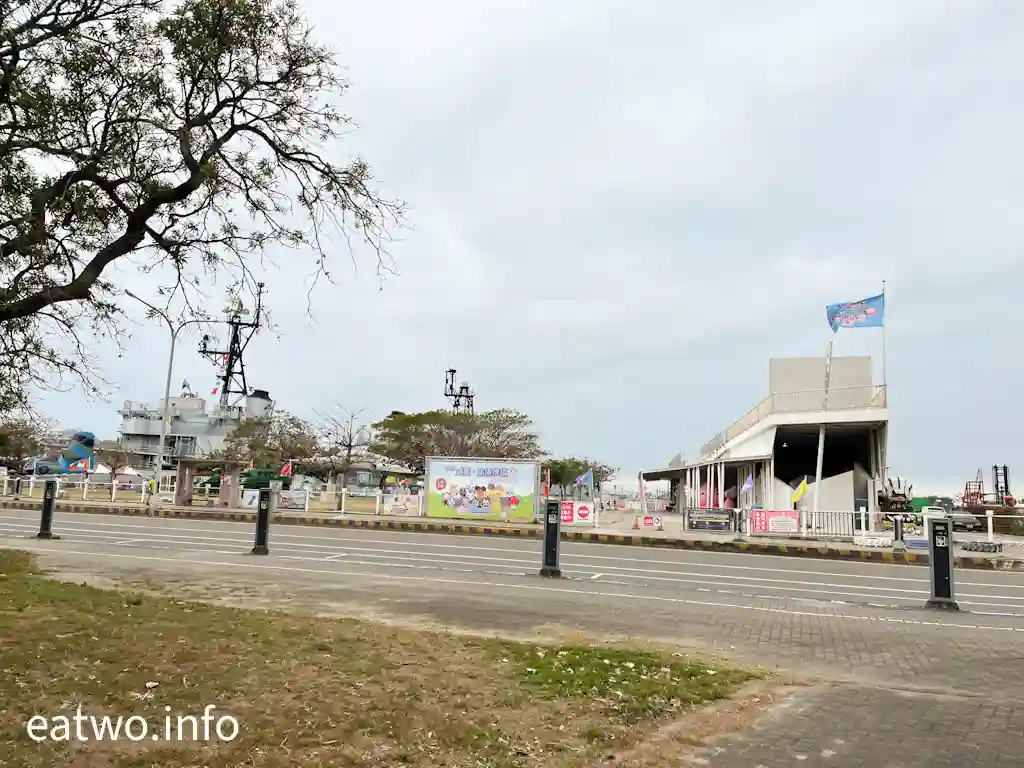 故此,走出「二鯤鯓砲臺(億載金城)」之後,可以轉身走向旁邊嘅「億載公園」。穿過該公園時,不難發現朝早唔少安平區在地人都喺度晨運。其實5分鐘就可以到達海邊位置,呢度正正係「安平定情碼頭德陽艦園區」。甫抵達園區,映入眼簾嘅就係草原上嘅坦克車、飛機﹐而背後就係大型軍艦同售票處。