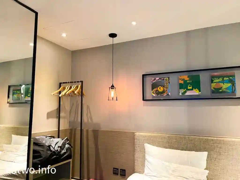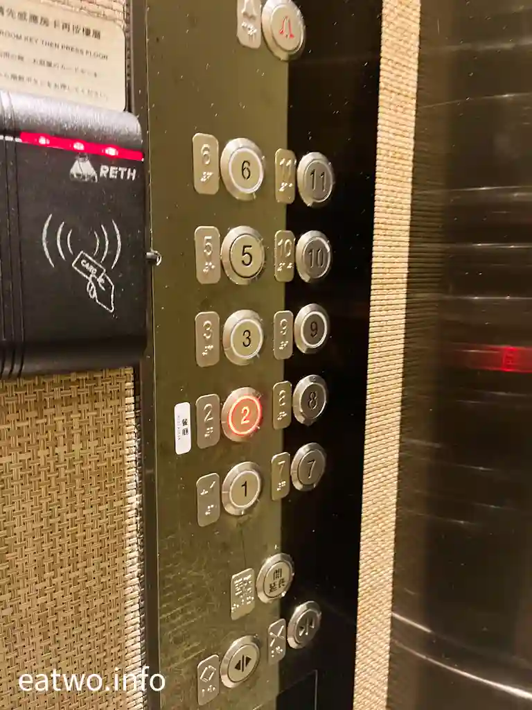 飯店雖然只有一部電梯,上落都係同一部,但等候時間亦唔算太耐。雖然樓高11層,不過電梯就無4字樓,換言之即係得10層。入住客人有2張房卡,一人一張都算方便,因為每次上樓必須刷卡。房間四正,地方唔細,簡潔明亮,中間擺放有頗舒適嘅大床。床頭旁邊有掛衫地方,下面有足夠位擺行李。而床頭同書檯都有幾個插頭,足夠叉電使用。