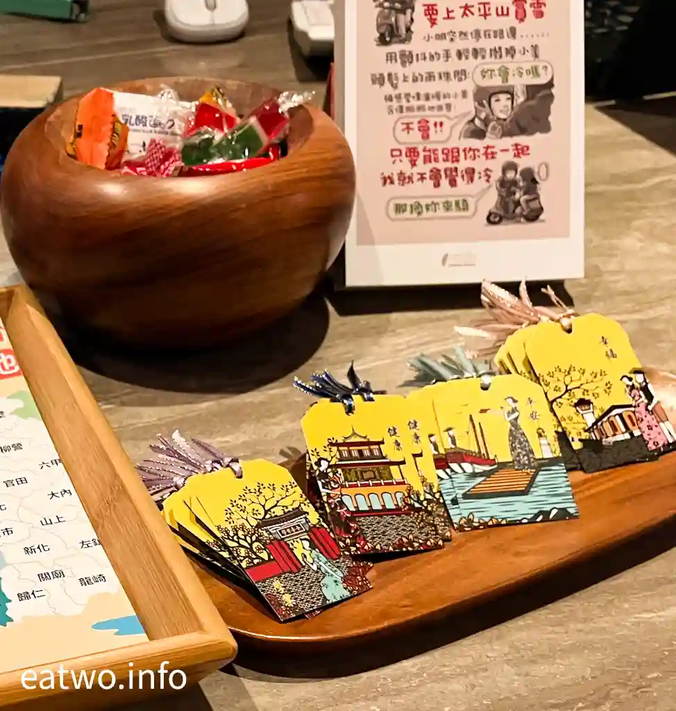 房間內唔單止有2支免費水、茶包、咖啡包,更特別之處係有2塊銅錢餅!到底銅錢餅係乜東東呢?銅錢餅入口有啲微甜,有少少似黑糖定麥芽糖味道,不過質感有少少酥感,但就偏腍身。原來銅錢餅係一種歷史悠久嘅小食,亦係台南嘅古早味小吃,外觀似足一個古代銅錢,多數上面都會寫「招財進寶」,所以叫「銅錢餅」。
