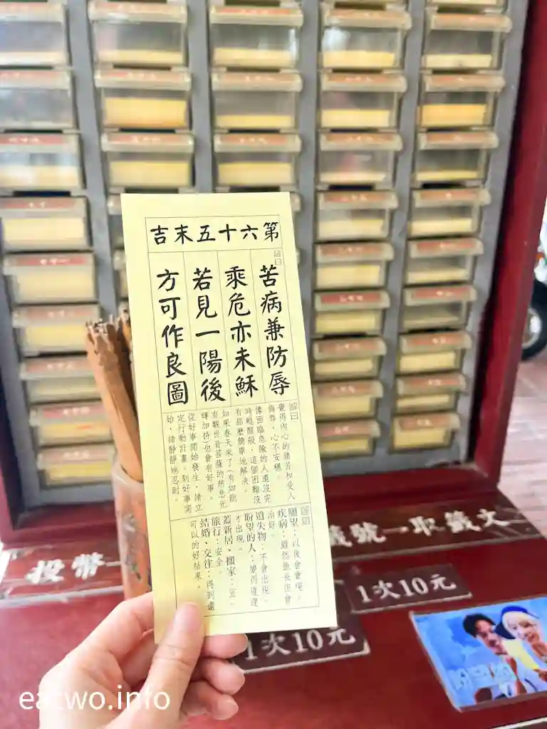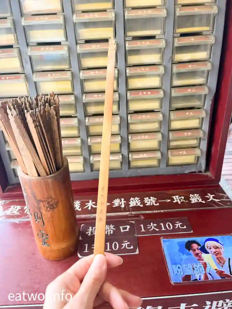 ❸ 自助占卜每次只係TWD10,如果抽到壞籤,有權唔需要畀錢,但抽到好籤就要放入TWD10。壞籤只需要放返入去前面指定箱內就得,而好籤就可以攞走。