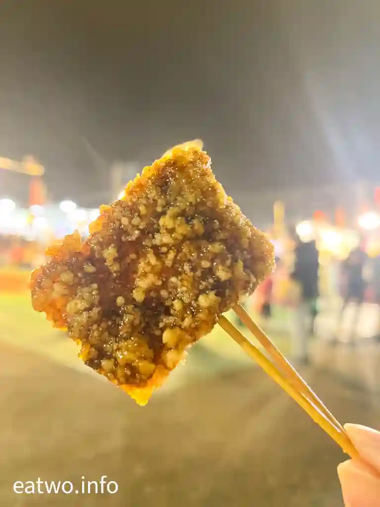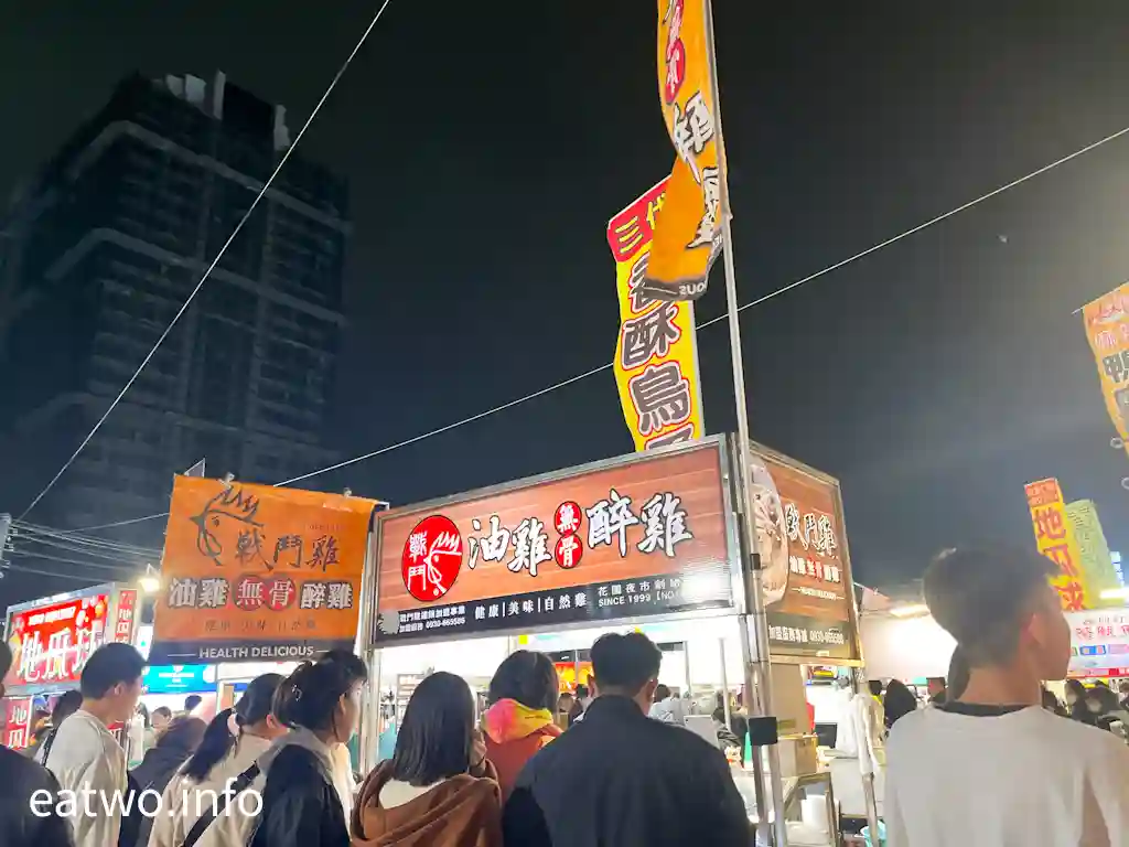 夜市選擇重有好多,其中「戰鬥雞無骨油雞醉雞」就係於「花園夜市」創始。其餘附近小吃有一塊TWD80嘅「統一碳烤香雞排」,該店旁邊拉咗條帶畀人排隊,而外面又的確keep住有人排隊等候,炸雞排流轉度頗高,可以即叫即炸,上手係熱焫焫,雞排表面有少少香甜醬汁,雞排表皮有脆感,入面不過不失,唔算好高分,但就係夜市水準。