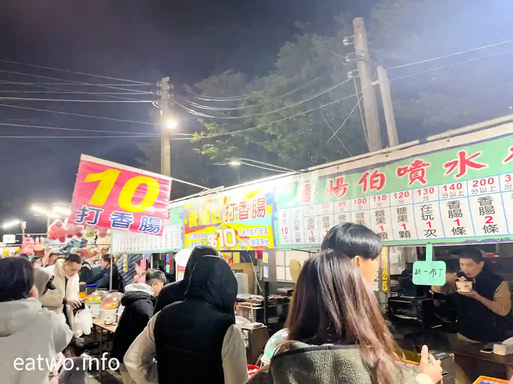 「花園夜市」入面主要分為美食小吃、流行服飾、精品百貨、休閒娛樂四個區域。唔單上有夜市小吃攤檔,更有玩樂嘅地方,例如「香腸伯10元打香腸」,呢種玩法係台南人嘅童年回憶之一,只需要用TWD10硬幣打中指定位置,就可以嬴到香腸,就算打唔到都有糖果做安慰獎。另外,夜市一隅更有表演睇,不時有駐場街頭藝人表演,當日就有人唱歌娛賓。