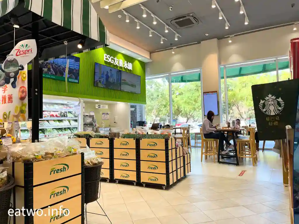 便利店同一般嘅7-ELEVEN只有少少分別,多咗個「Fresh」字,皆因便利店內係有唔少生鮮食材可以選擇﹐更有日式雜貨、酒賞等,逾50排貨架似足超市。而便利店唔單止有結合酒Bar區嘅座位同Cafe模式,門口一端更有偌大玻璃窗,方便採光同擴闊空間。