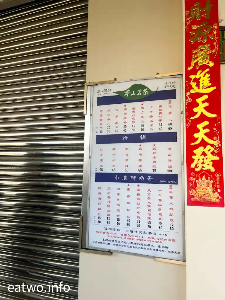 不過,門口其實都有寫店內有青山茗茶、特調、小農鮮奶茶可以選擇,比如係濃茶追夢人TWD60至65、黃金麥仔茶TWD35至40、十年普淬TWD60至65、東方美人TWD45至50、蜜香紅茶TWD40至45、琥珀檸檬TWD65、琥珀冰磚奶TWD75、蜜香鮮奶紅烏龍TWD65至70等。單單Google評分有4.7分,就可以估算該店嘅在地嘅人氣指數。